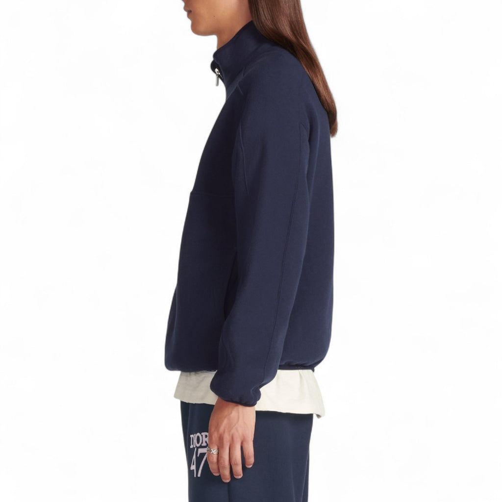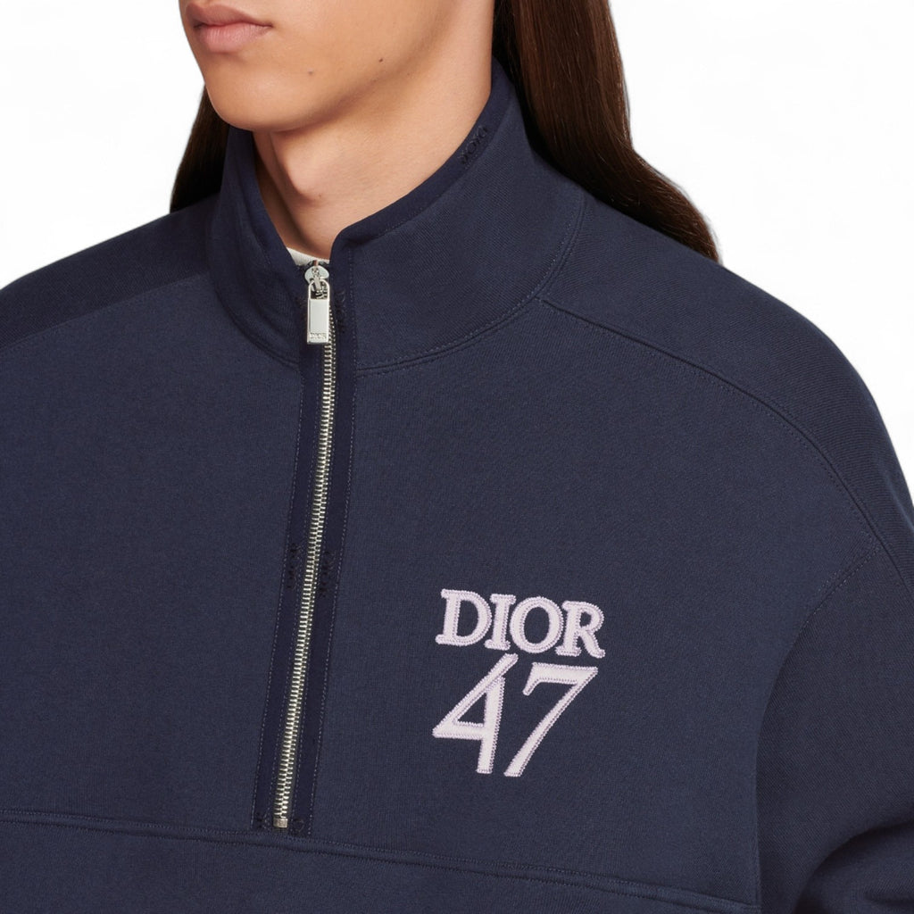 سويت شيرت ديور 47 مطرز بنصف سحاب للرجال باللون الأزرق الداكن - سيتم شحن لمقاس هذا المنتج خلا 15-30 يوم