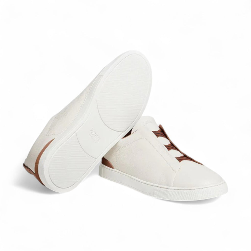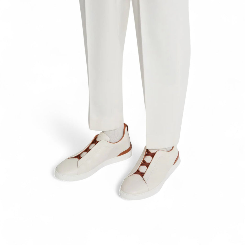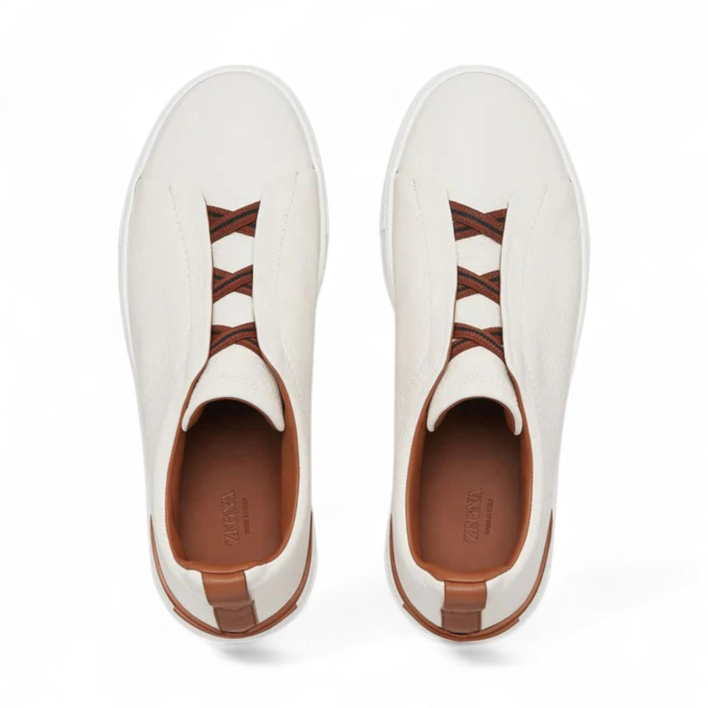 حذاء رياضي رجالي من ZEGNA بخياطة ثلاثية من جلد الغزال باللون البيج - سيتم شحن لمقاس هذا المنتج خلا 15-30 يوم