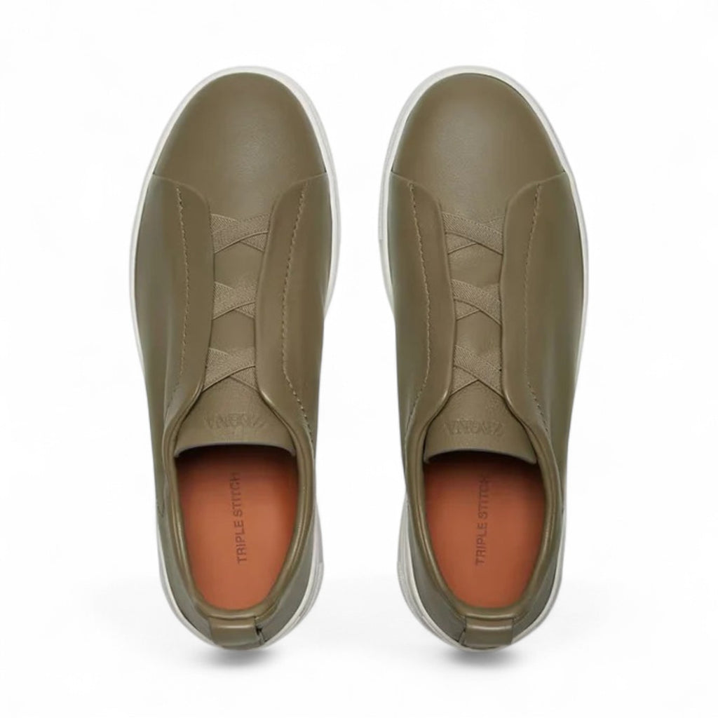 حذاء رياضي رجالي من ZEGNA LIGHT OLIVE GREEN TRIPLE STITCH SECONDSKIN باللون الأخضر الزيتوني الفاتح - سيتم شحن لمقاس هذا المنتج خلا 15-30 يوم