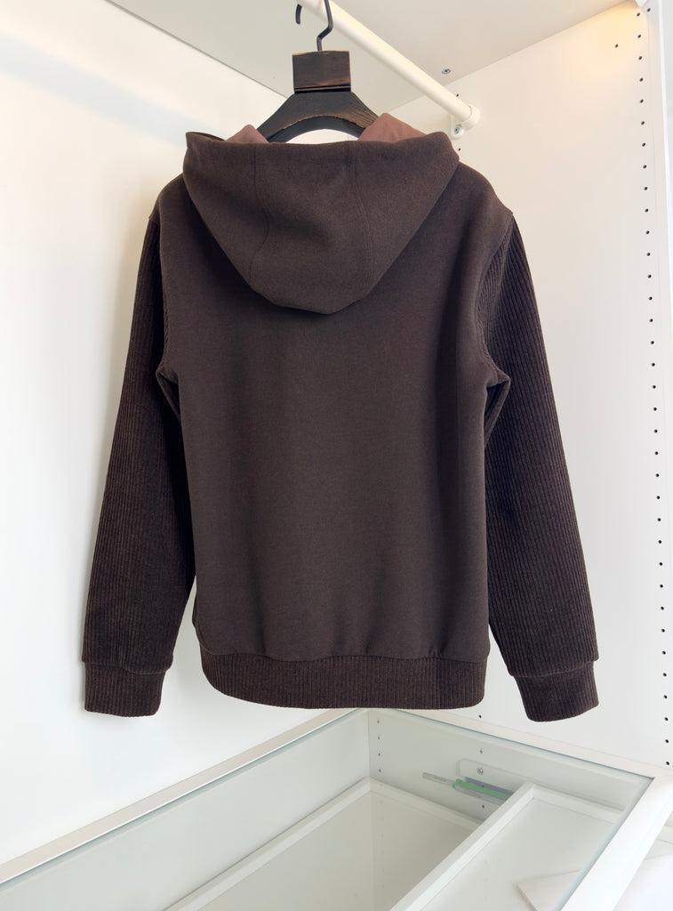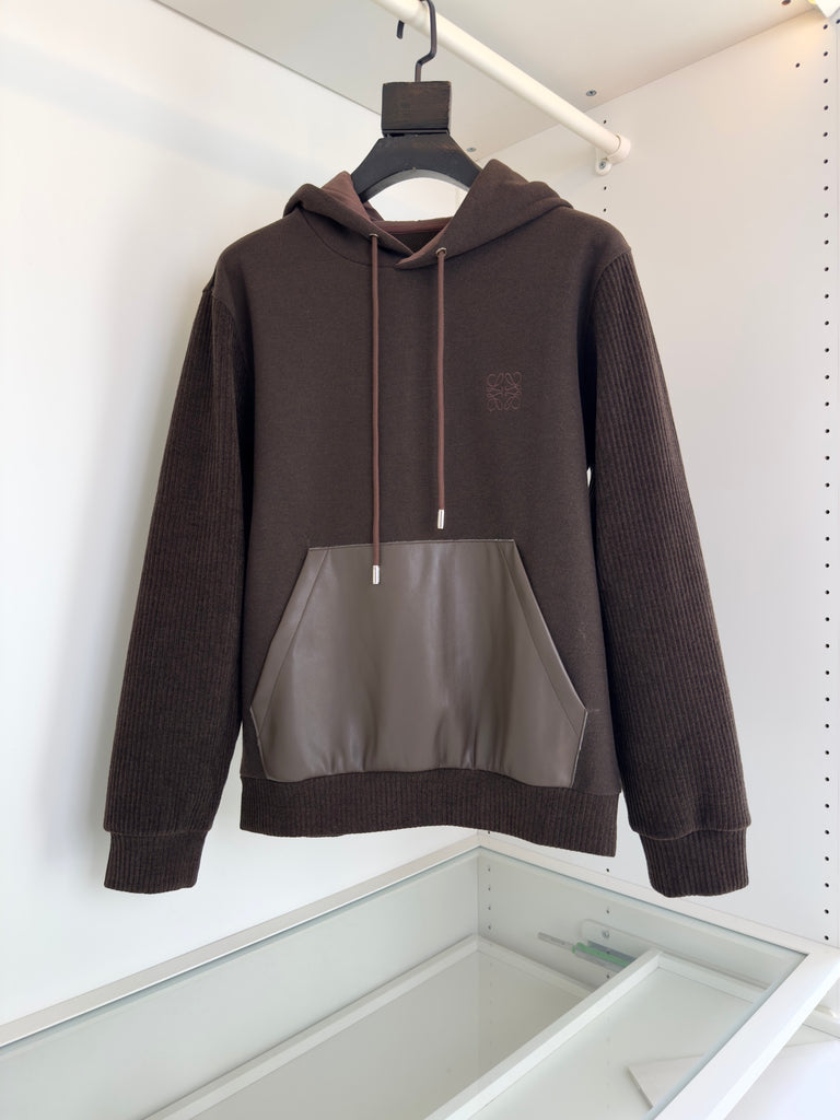 هودي من مزيج الصوف من لويفي، بني شوكولاتة، مرقع