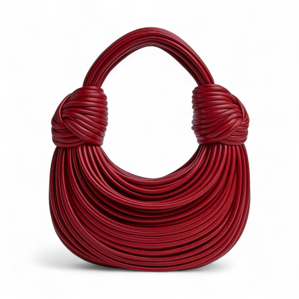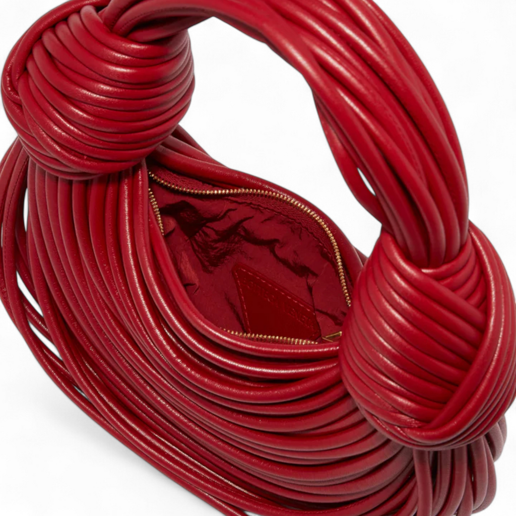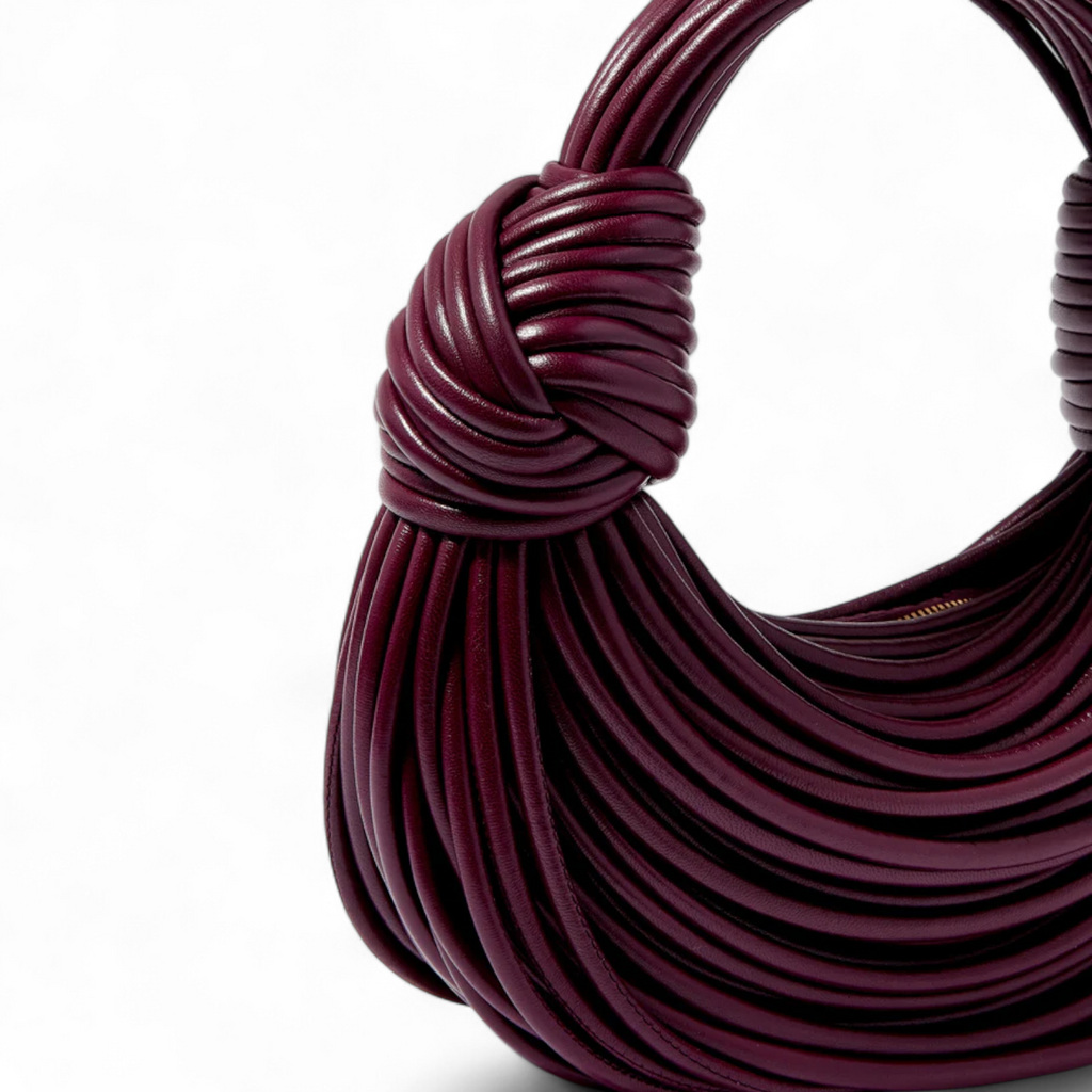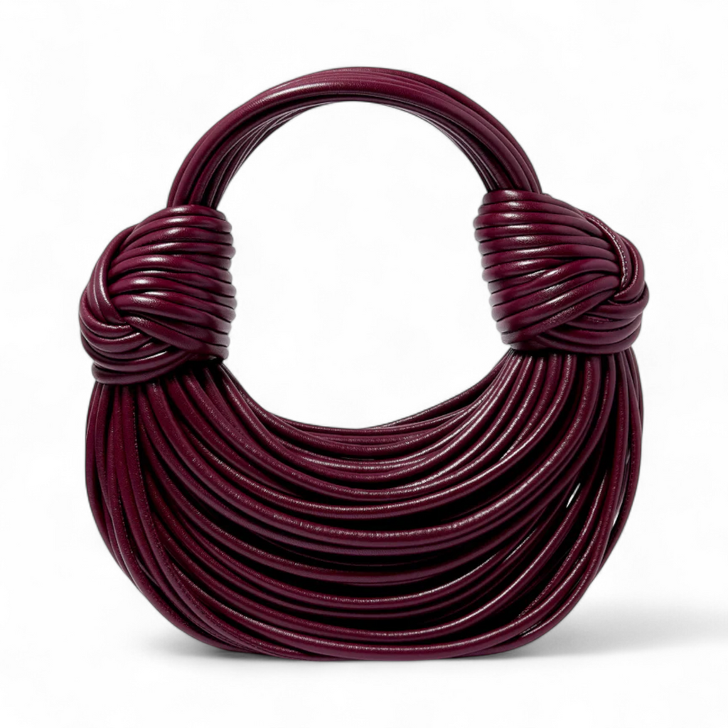 حقيبة بوتيغا فينيتا ذات العقدة المزدوجة من جلد النابا باللون العنابي