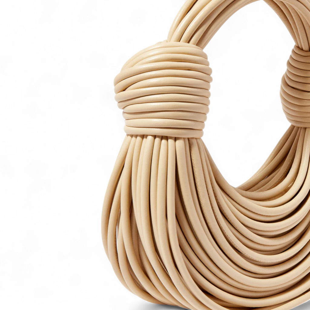 حقيبة بوتيغا فينيتا ذات العقدة المزدوجة من جلد نابا باللون البيج