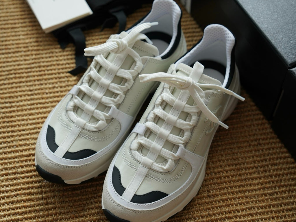 حذاء شانيل الرياضي النسائي من جلد العجل والشمواه باللون الأبيض