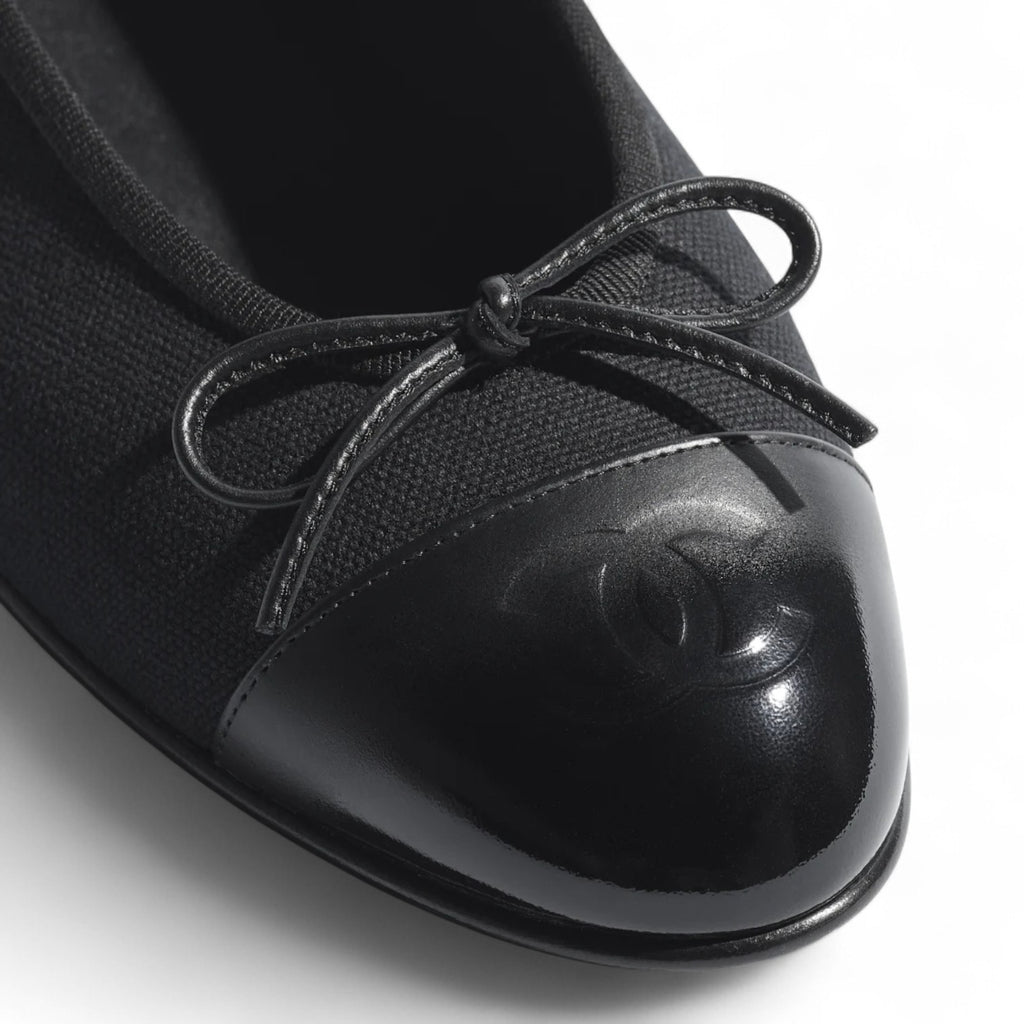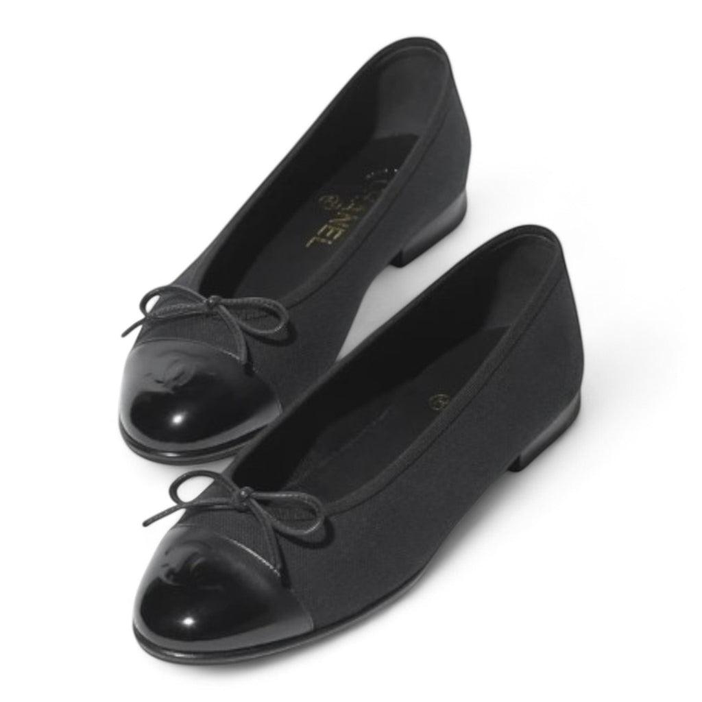 حذاء شانيل باليرينا نسائي أسود مسطح -