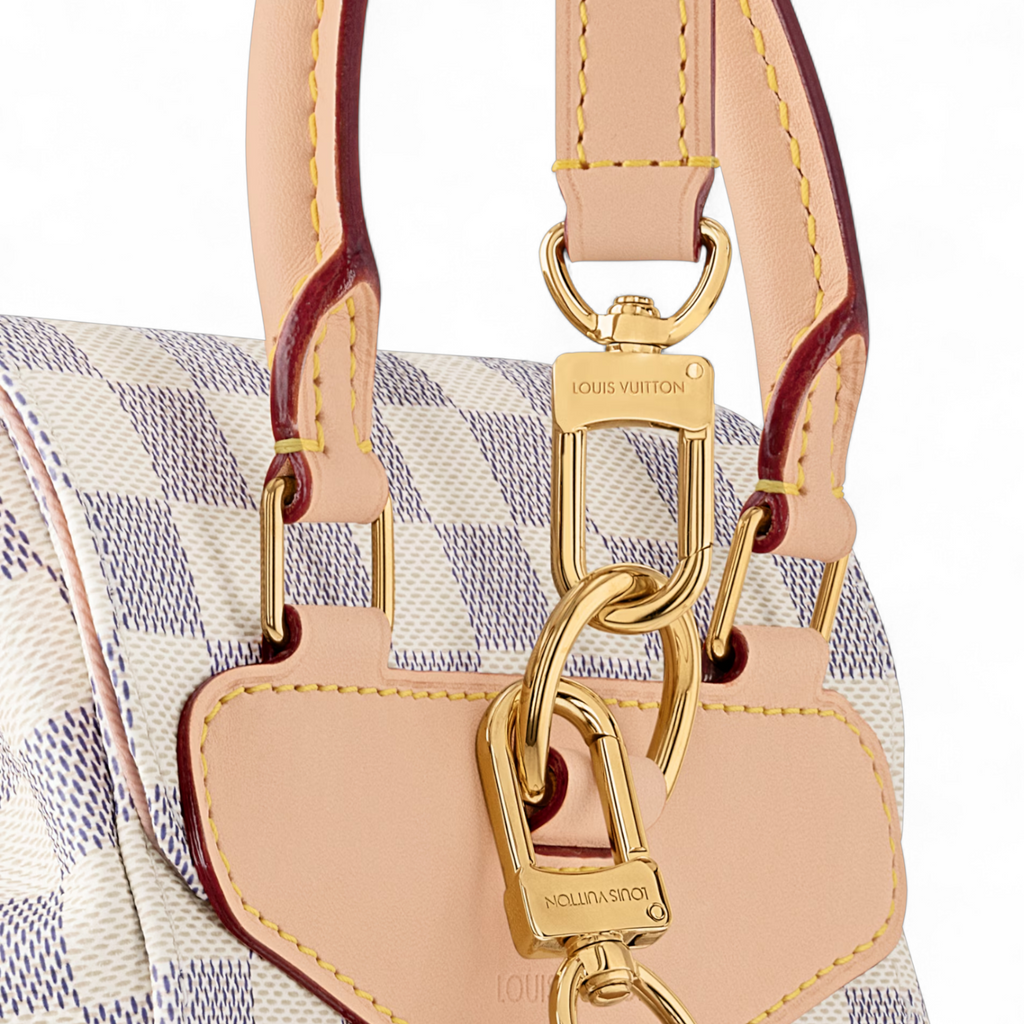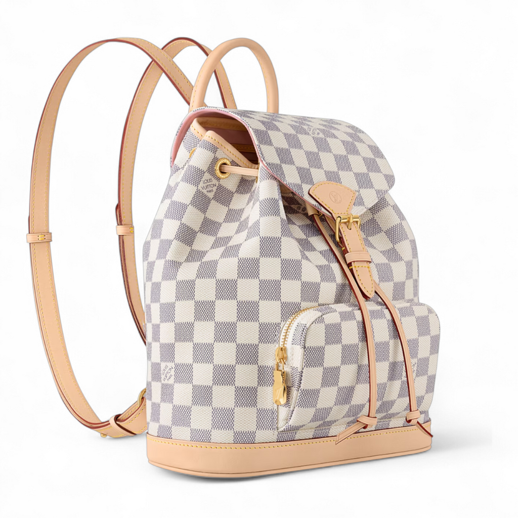 The Montsouris PM is reimagined for the season with the iconic Damier Azur motif. Applied using heliogravure printing, the signature pattern is complemented with gold-toned hardware and contrasting leather trims. This versatile backpack is sized to hold everyday essentials and includes a front zipped pocket to keep smaller items secure. The canvas straps are adjustable to ensure the perfect fit.