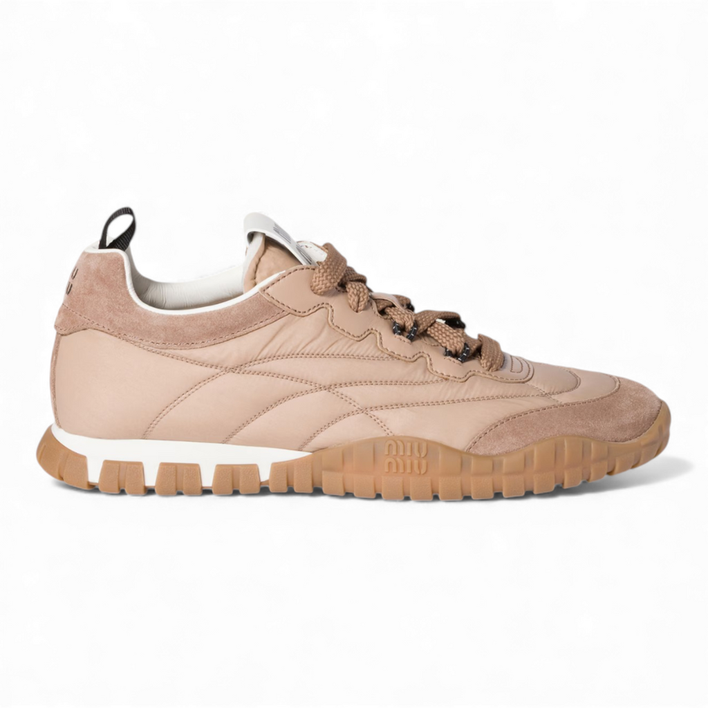 MIU MIU TYRE TECHNICAL FABRIC AND SUEDE WOMEN DARK ROSE SNEAKERS