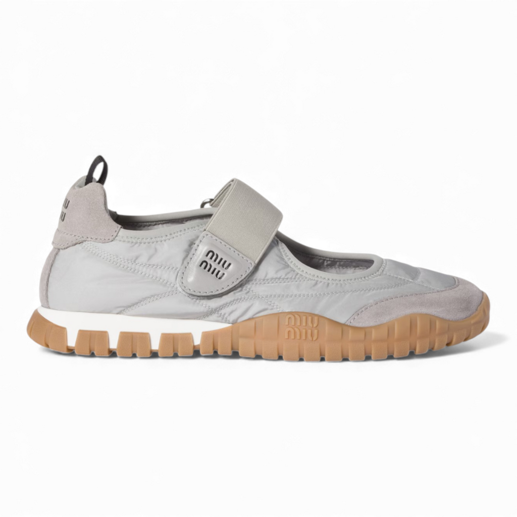 MIU MIU TYRE TECHNICAL FABRIC AND SUEDE WOMEN GREY BALLERINAS