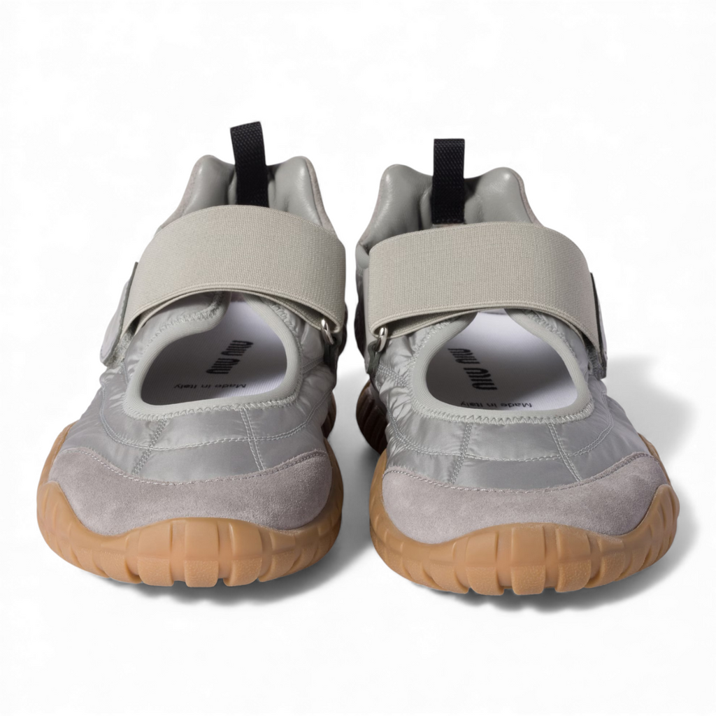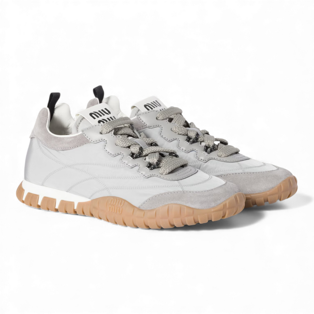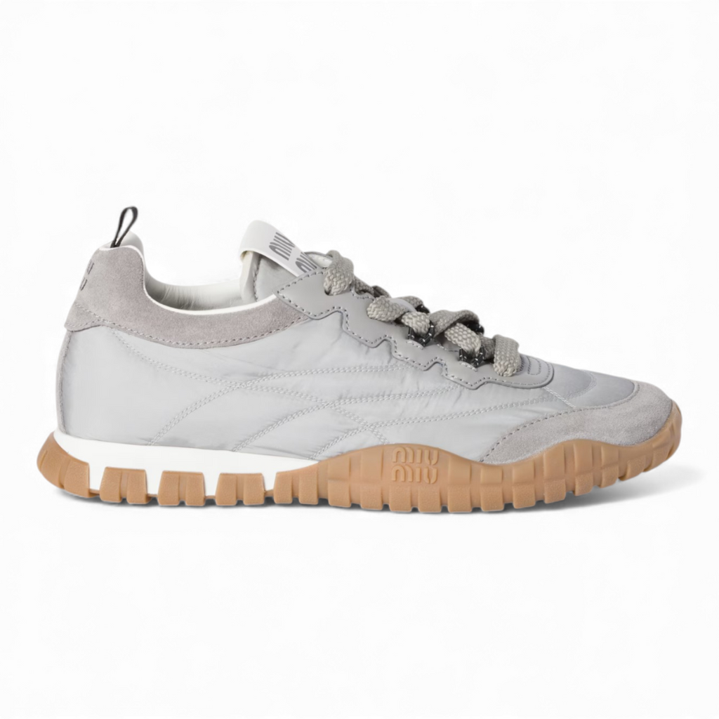 MIU MIU TYRE TECHNICAL FABRIC AND SUEDE WOMEN GREY SNEAKERS