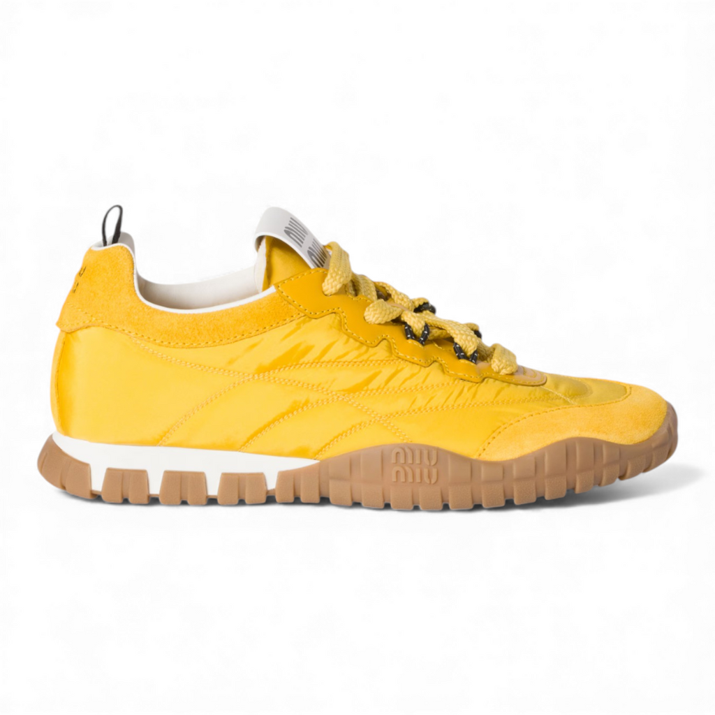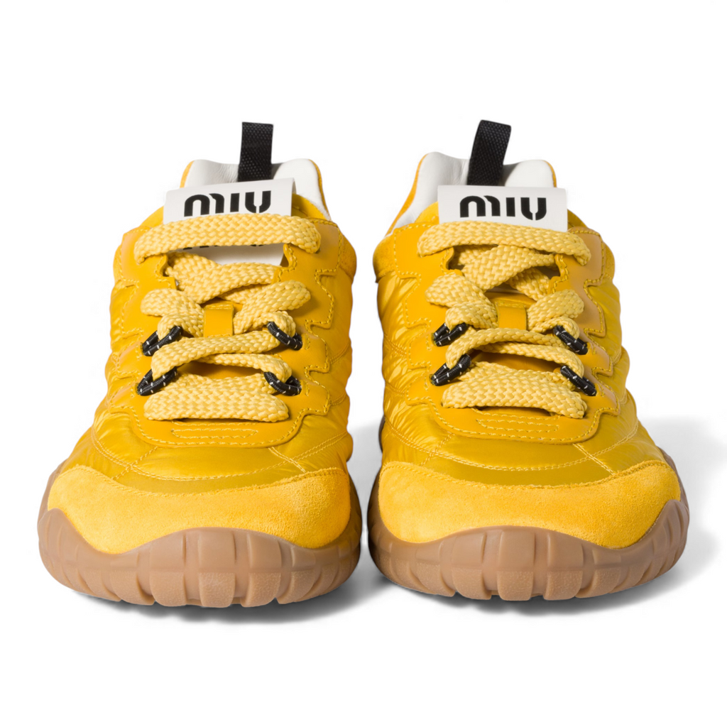 MIU MIU TYRE TECHNICAL FABRIC AND SUEDE WOMEN YELLOW SNEAKERS
