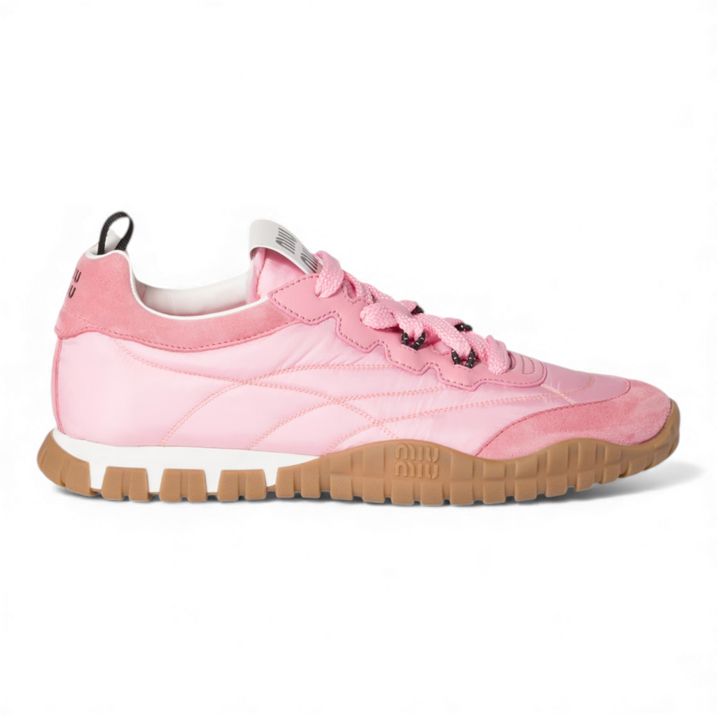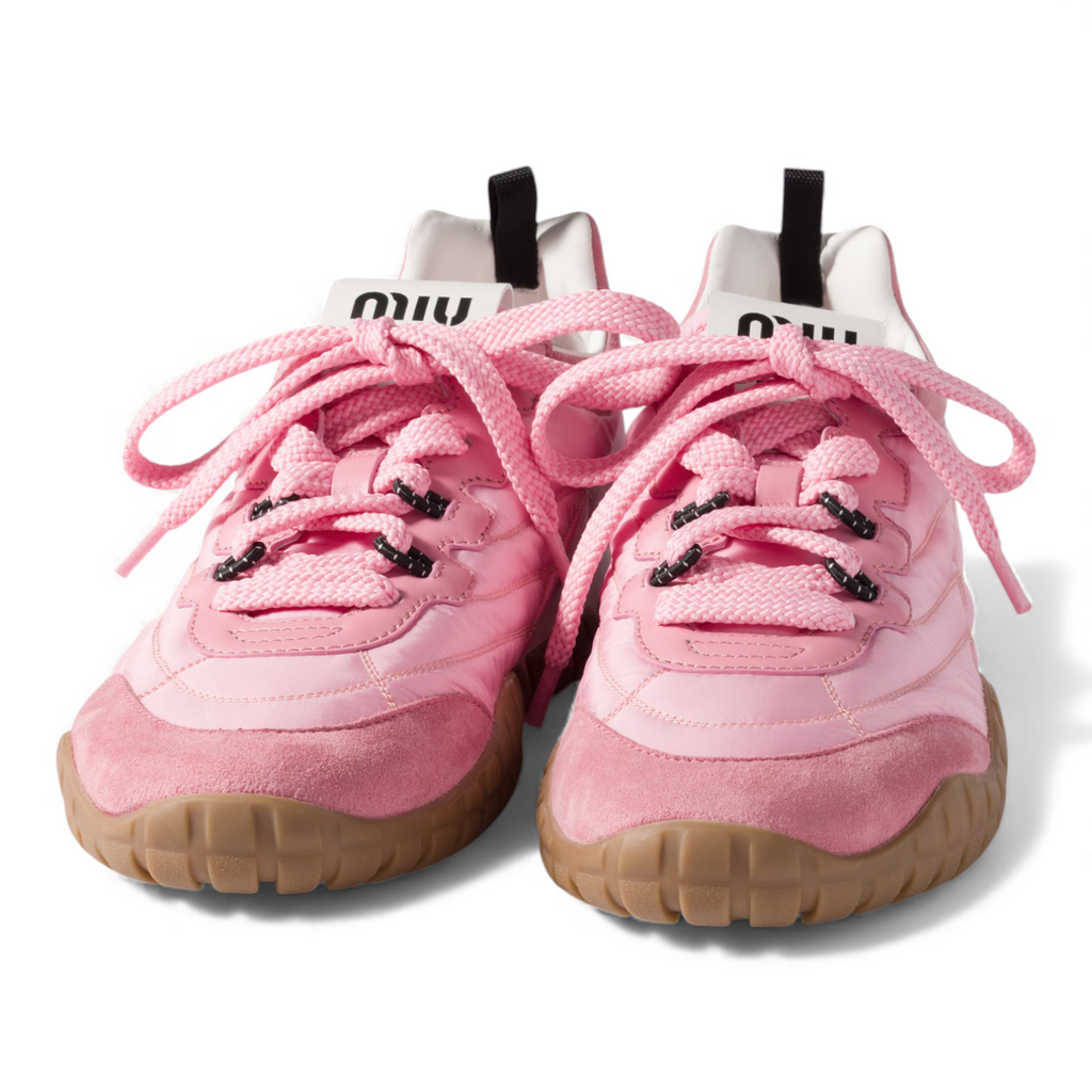 MIU MIU TYRE TECHNICAL FABRIC AND SUEDE WOMEN PINK SNEAKERS