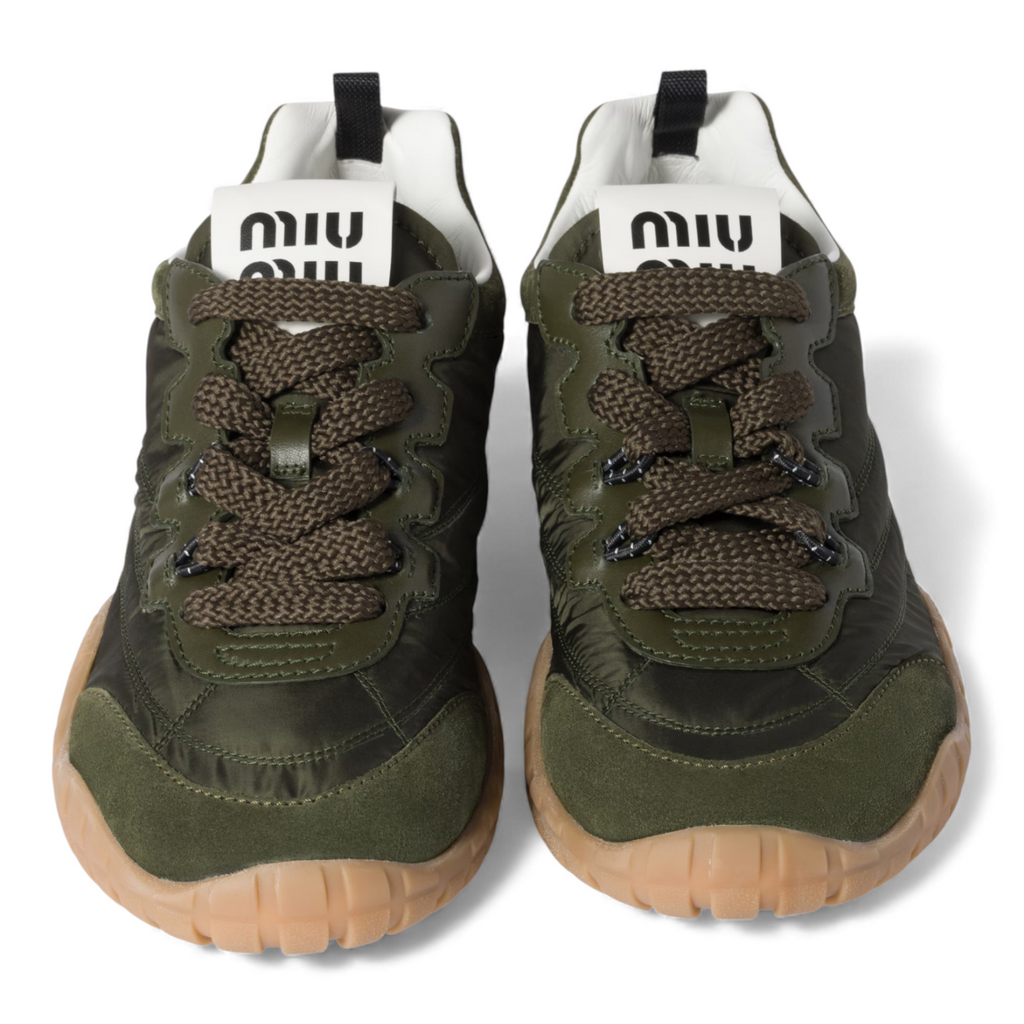MIU MIU TYRE TECHNICAL FABRIC AND SUEDE WOMEN GREEN SNEAKERS