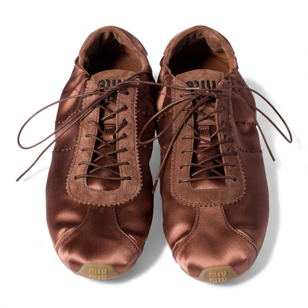 MIU MIU PLUME SATIN WOMEN BROWN SNEAKERS