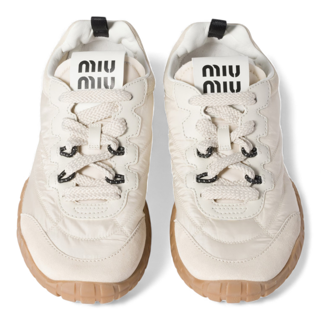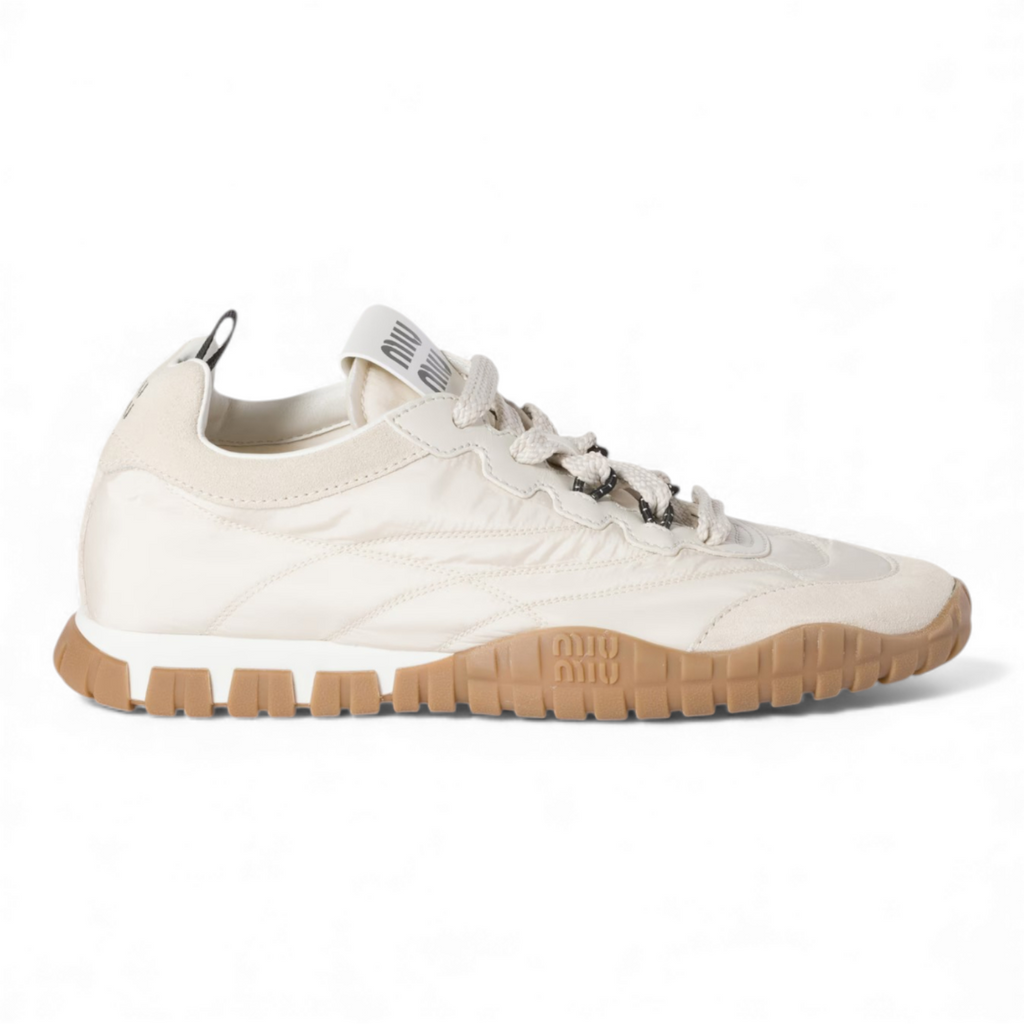 MIU MIU TYRE TECHNICAL FABRIC AND SUEDE WOMEN WHITE SNEAKERS