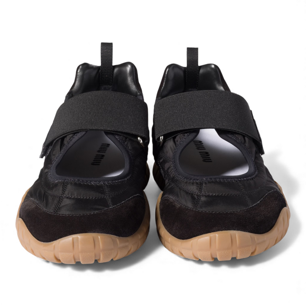 MIU MIU TYRE TECHNICAL FABRIC AND SUEDE WOMEN BLACK BALLERINAS