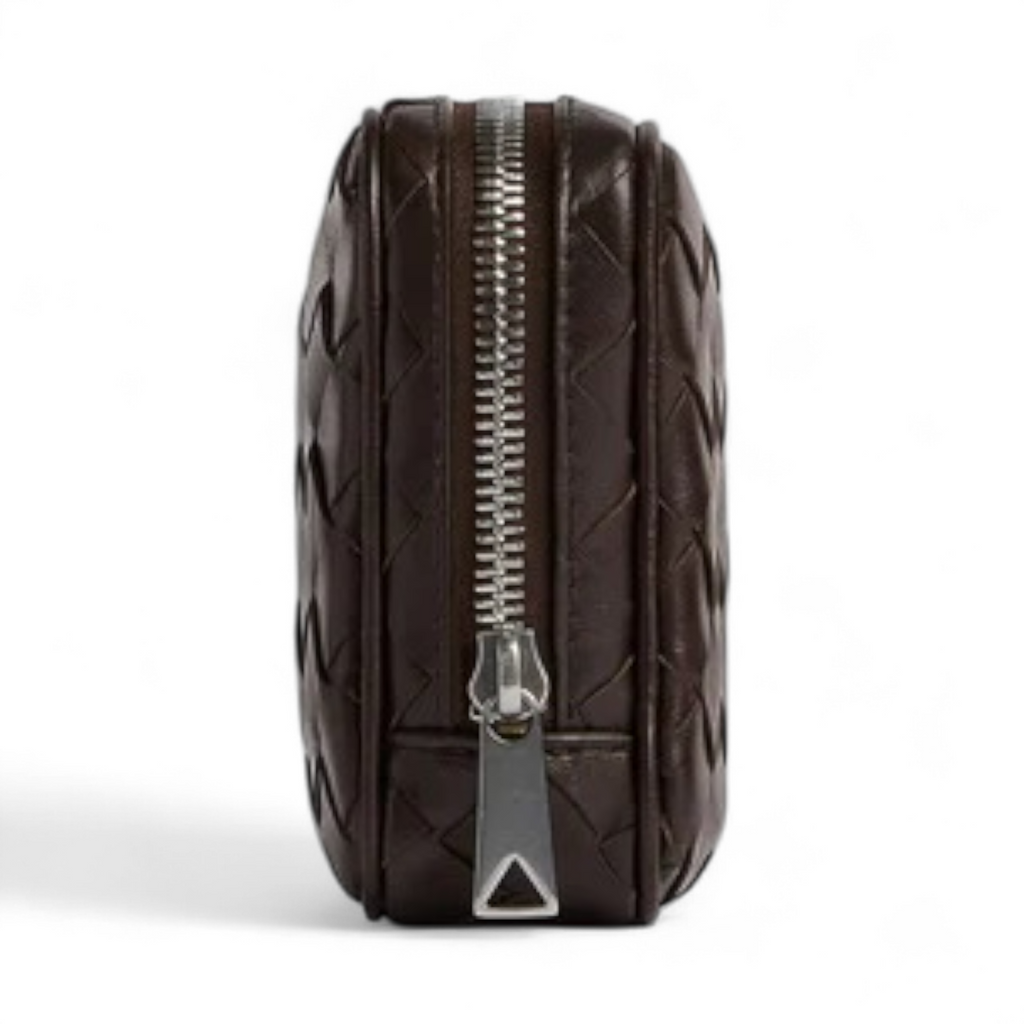 حقيبة تنظيم صغيرة بسحاب من بوتيغا فينيتا انتريشياتو فوندانت باللون البني الداكن
