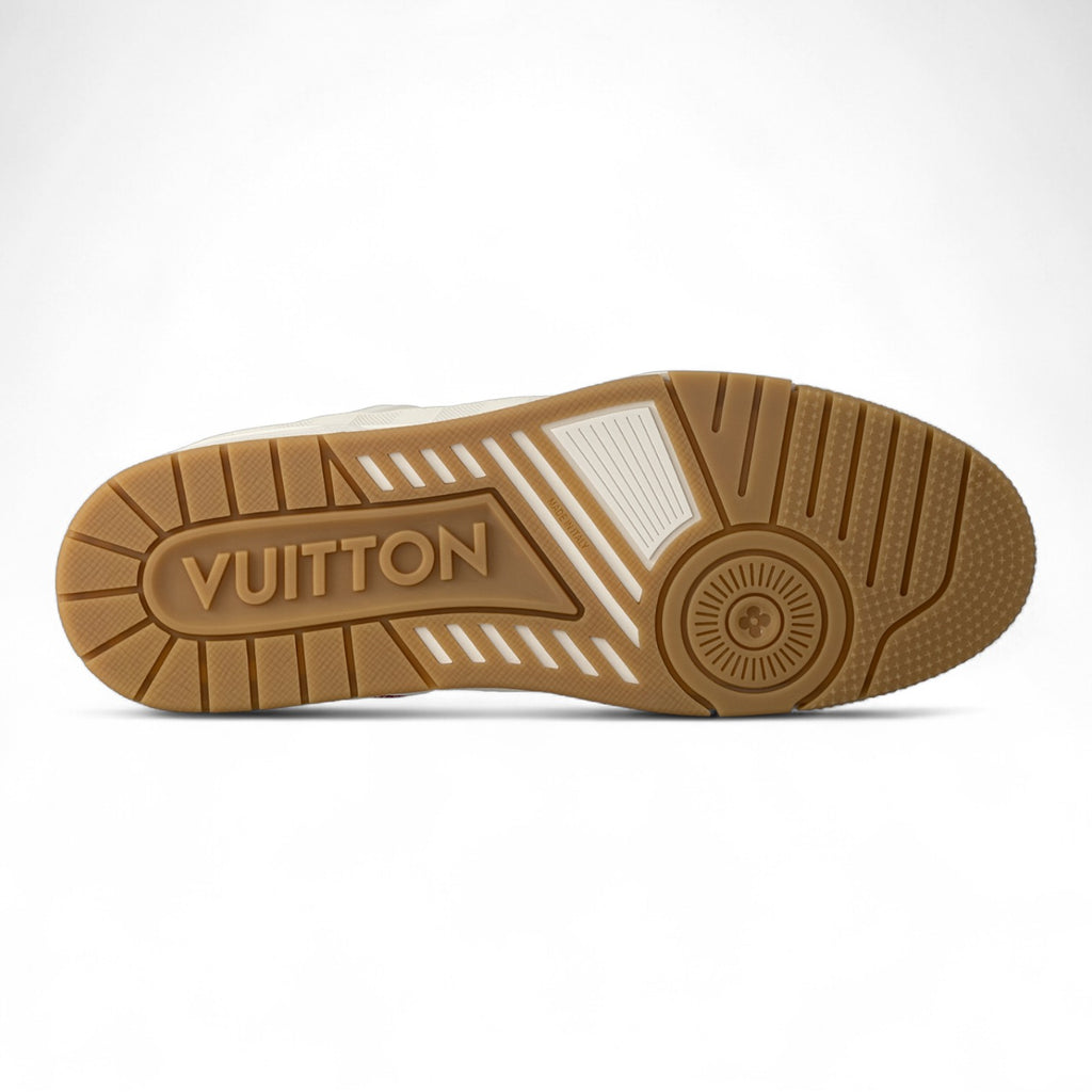 هذه النسخة المُحسّنة من حذاء LV Trainer الرياضي الشهير مصنوعة من جلد عجل ناعم منقوش بنقش دامييه التاريخي. أربطة جلدية بأطراف معدنية تُضفي لمسةً مميزة على هذا الموديل، الذي يتميز أيضًا بأحرف LV الأولية المتباينة وتوقيعات Vuitton. النعل الخارجي المصنوع من المطاط التقني مُزين بثلاث زهور مونوغرام.