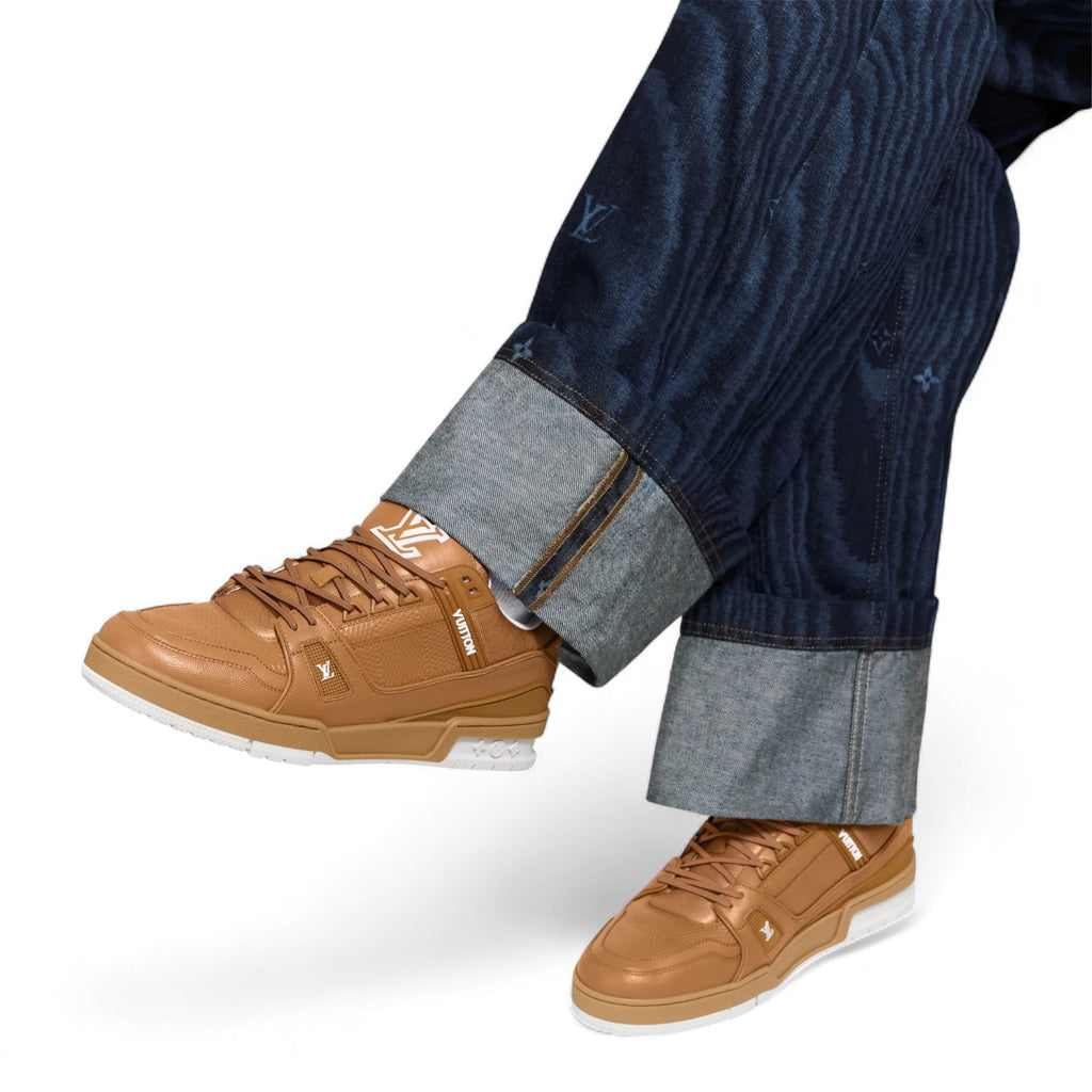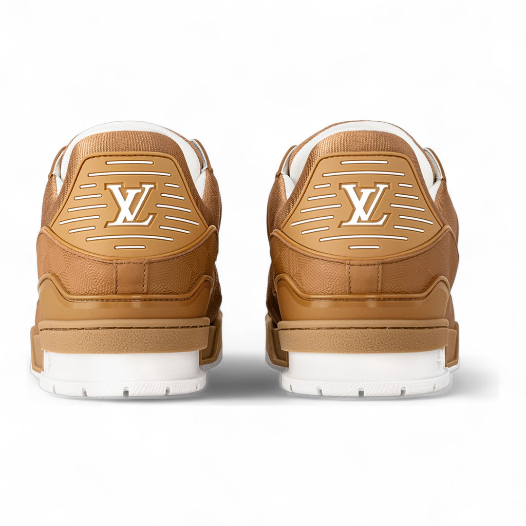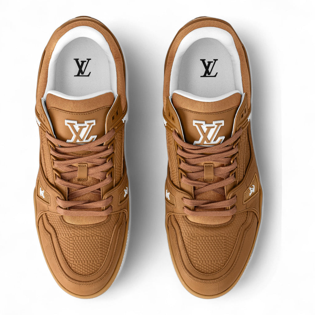 حذاء رياضي رجالي من جلد العجل من لويس فيتون بنقش دامييه باللون البني