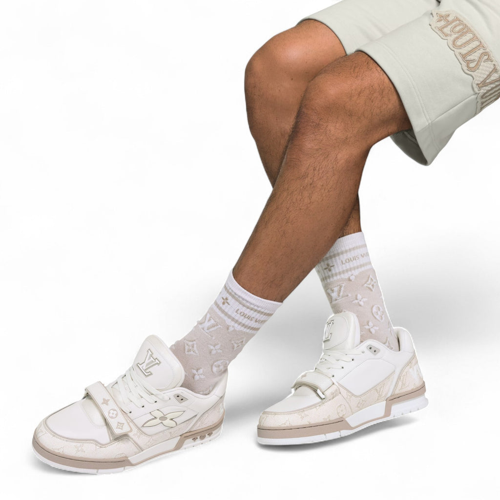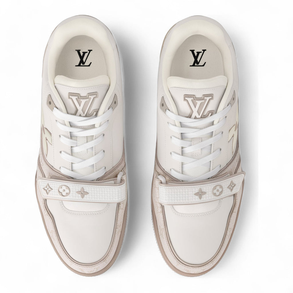 حذاء رياضي رجالي من جلد العجل بنقشة مونوغرام من لويس فيتون، لون بيج - سيتم شحن لمقاس هذا المنتج خلا 15-30 يوم
