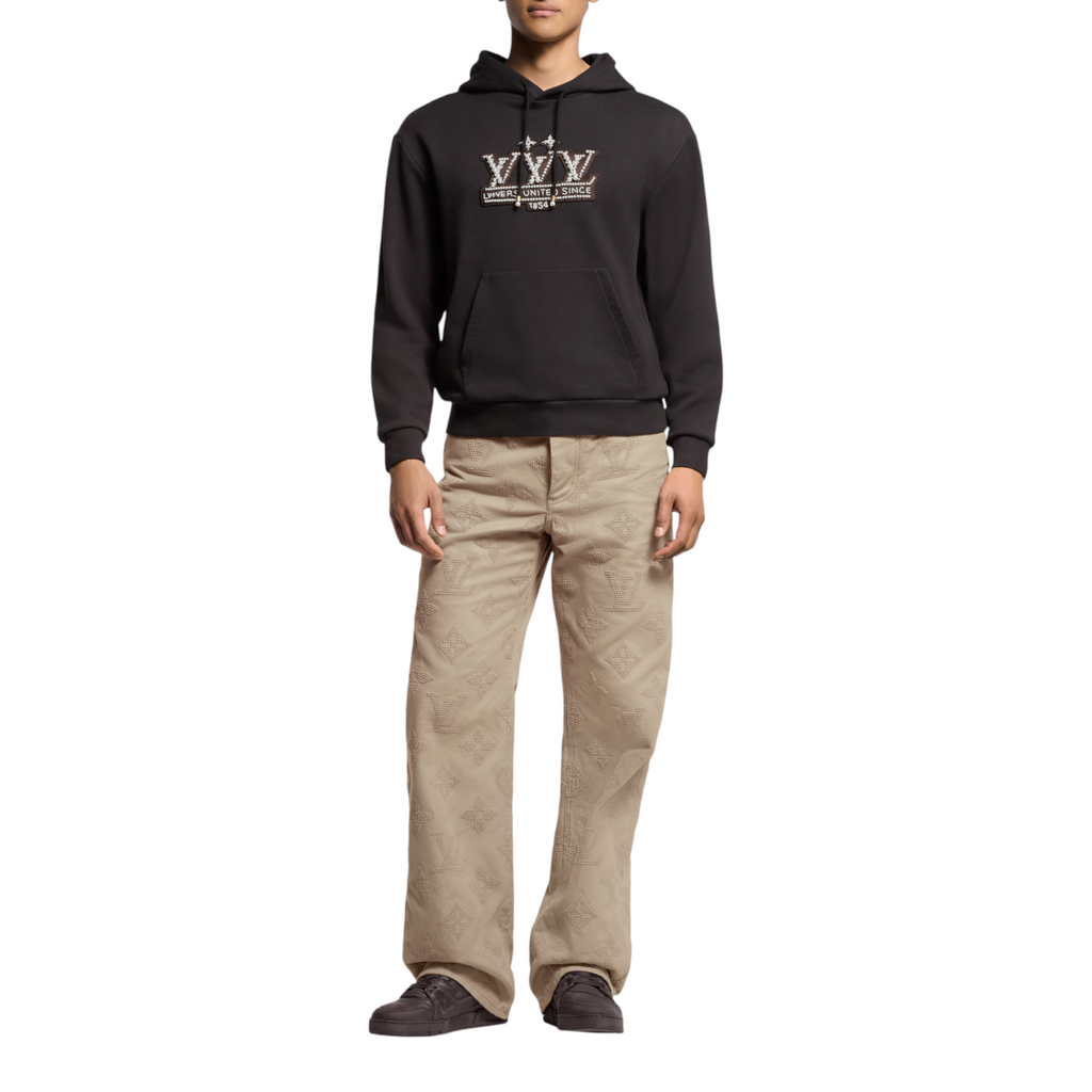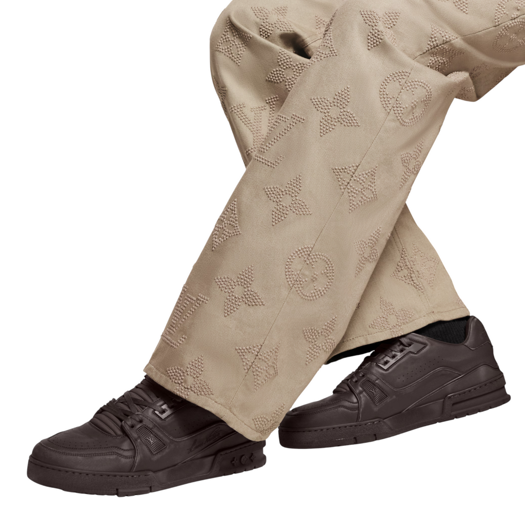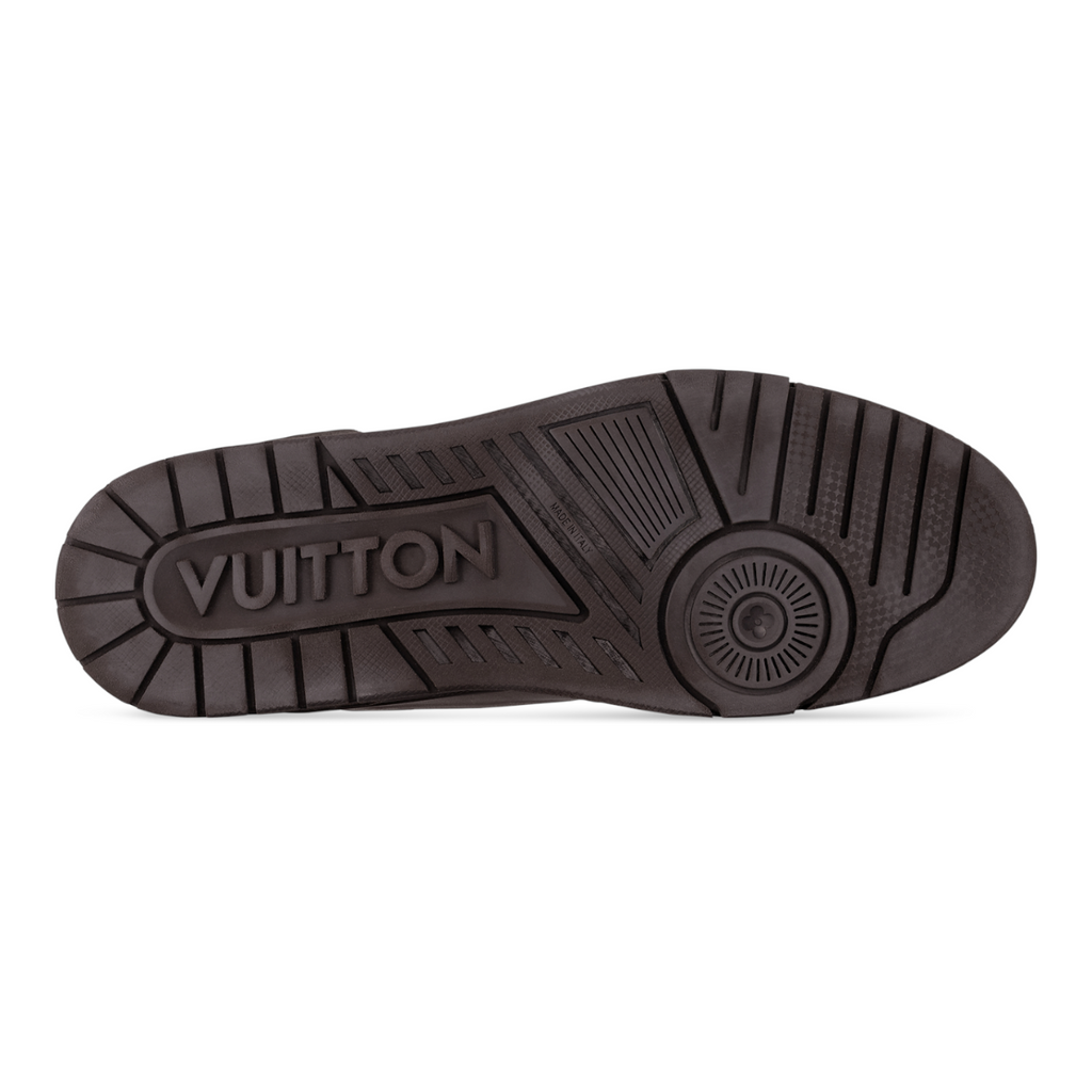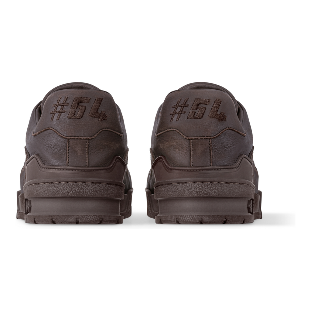 يُعاد تصميم حذاء LV Trainer الرياضي الشهير هذا الموسم بجلد عجل ناعم بمظهر عتيق ذي لمسة عتيقة. ويكتمل هذا التصميم بتوقيعات مطرزة: شعار لويس فويتون مكتوبًا على الجانب ورقم 54 على الخلف، في إشارة إلى عام 1854، تاريخ تأسيس الدار. النعل الخارجي المطاطي متناسق الألوان مزين بثلاث زهور مونوغرام.