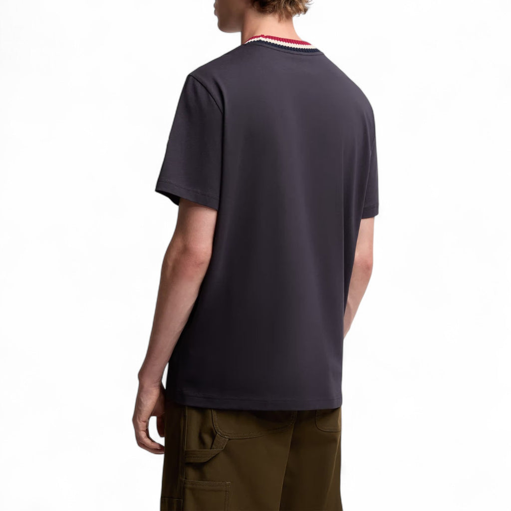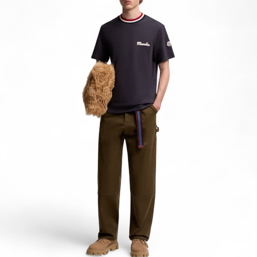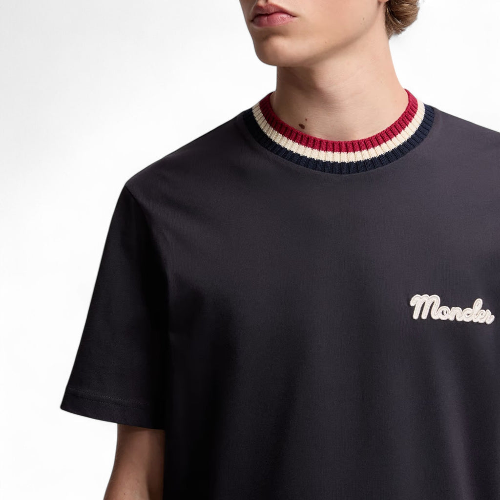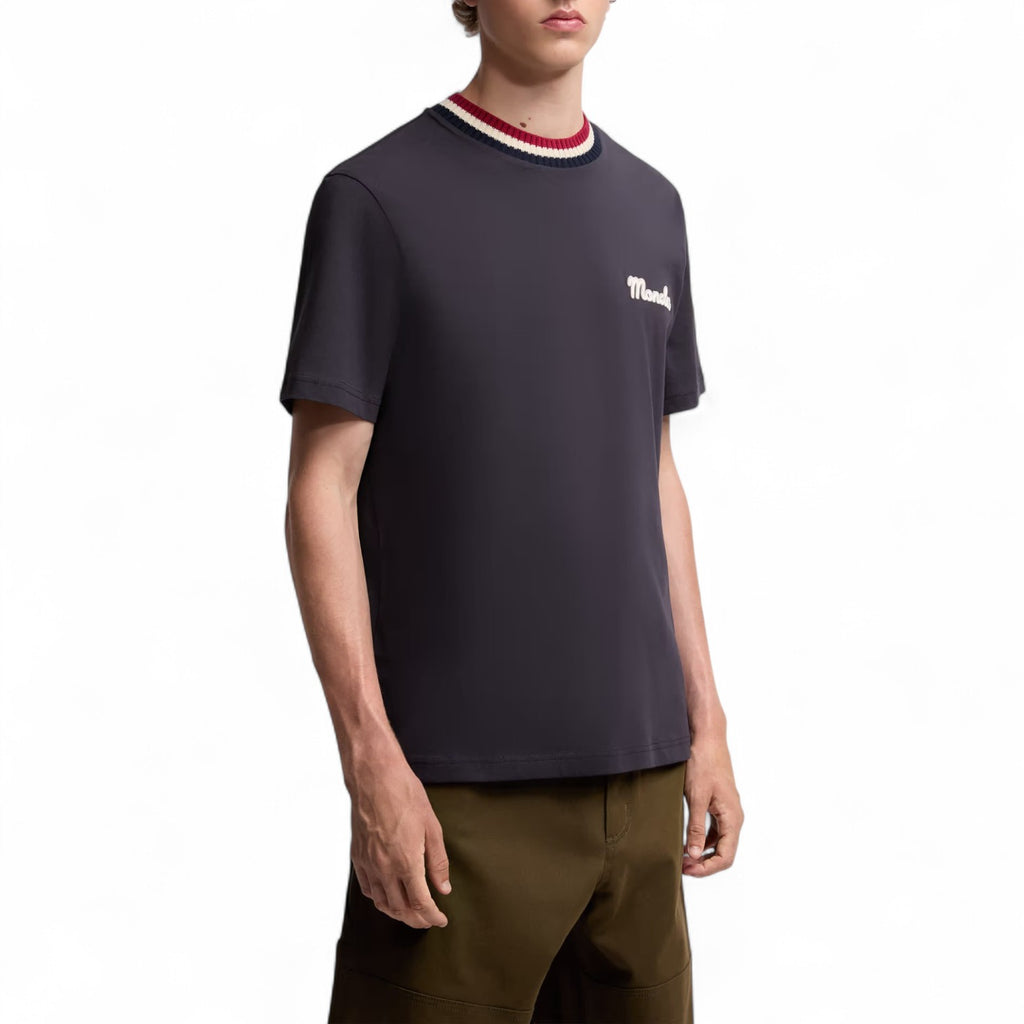 تي شيرت مونكلير قطني مطرز بشعار مونكلير باللون الأزرق الداكن - سيتم شحن لمقاس هذا المنتج خلا 15-30 يوم