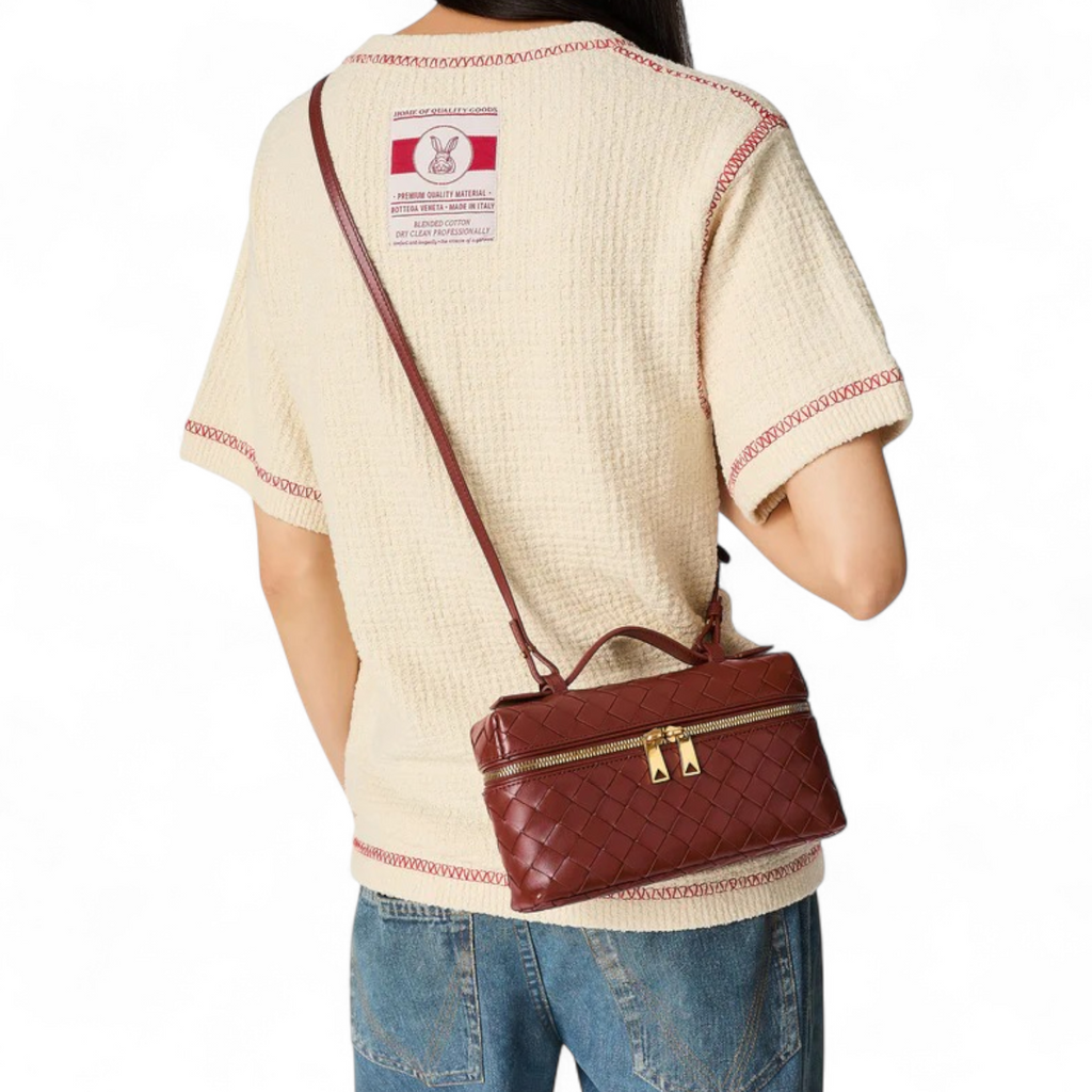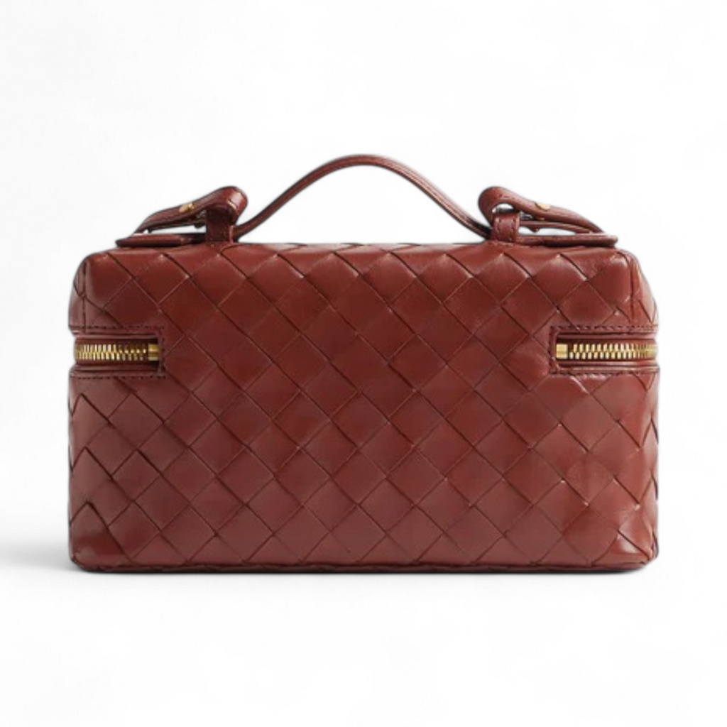 • حقيبة مستحضرات تجميل من الجلد المتشابك مع حزام قابل للفصل • حجرة رئيسية واحدة، وجيب مسطح واحد • إغلاق بسحاب • المادة: جلد العجل • البطانة: جلد العجل • الأجهزة: مطلية بالذهب • الارتفاع: 13 سم | 5.1 بوصة • العرض: 23 سم | 9 بوصة • العمق: 6 سم | 2.4 بوصة • ارتفاع المقبض: 4.5 سم | 1.8 بوصة • طول الحزام: 45 سم | 17.7 بوصة • صنع في: إيطاليا