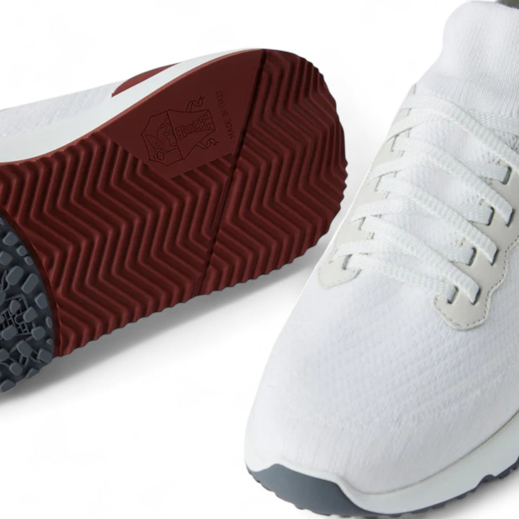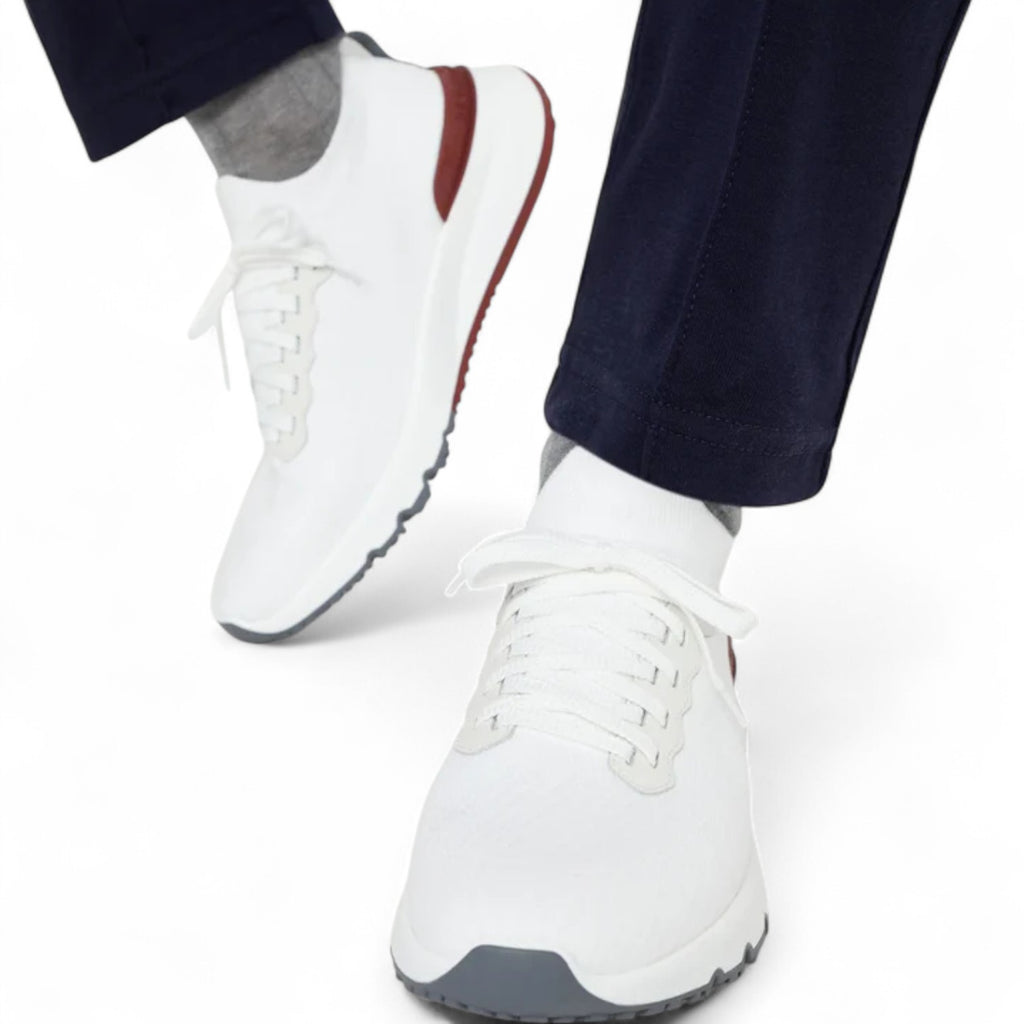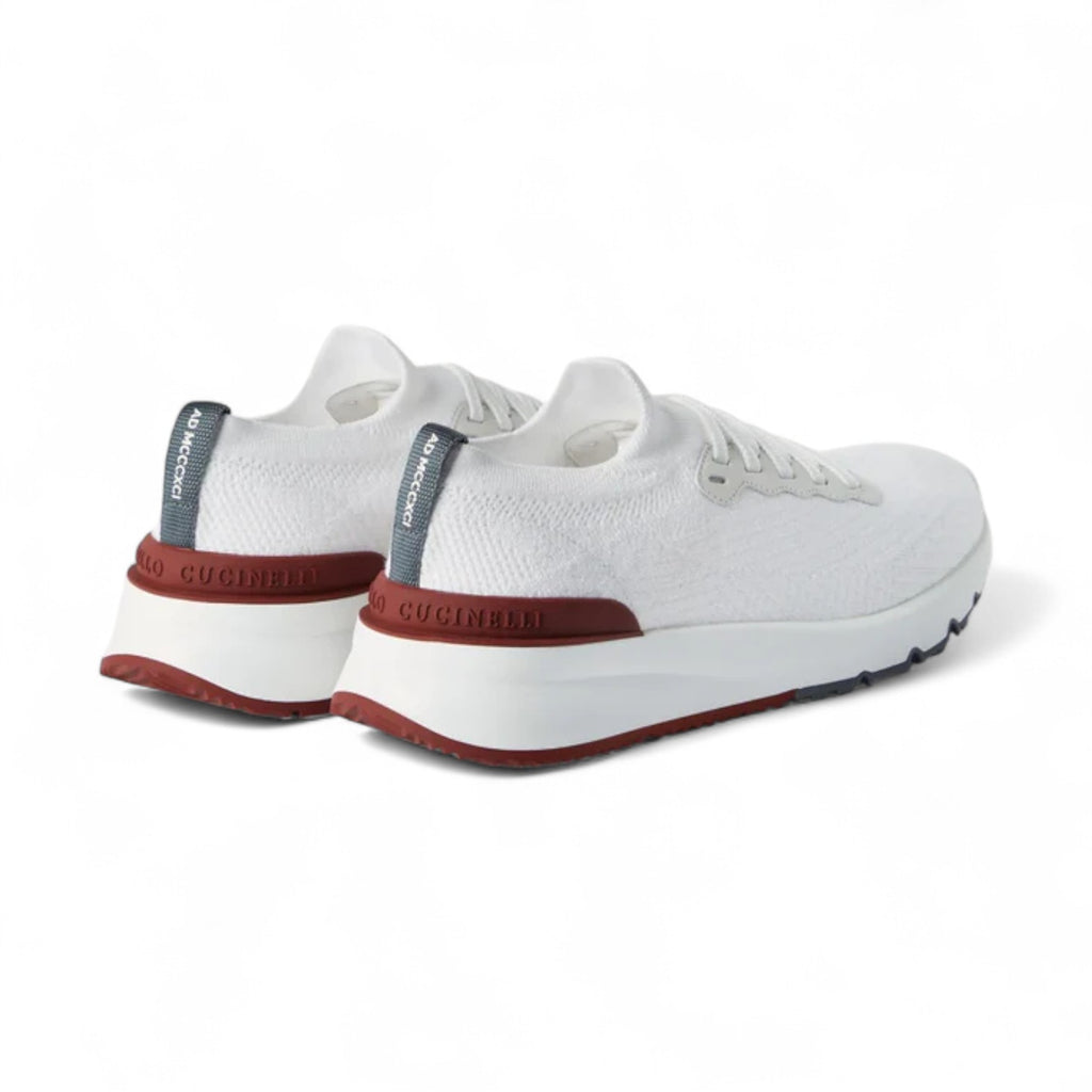 حذاء رياضي أبيض للرجال من برونيللو كوتشينيلي مصنوع من القطن المحبوك وجلد العجل المصقول جزئيًا - سيتم شحن لمقاس هذا المنتج خلا 15-30 يوم