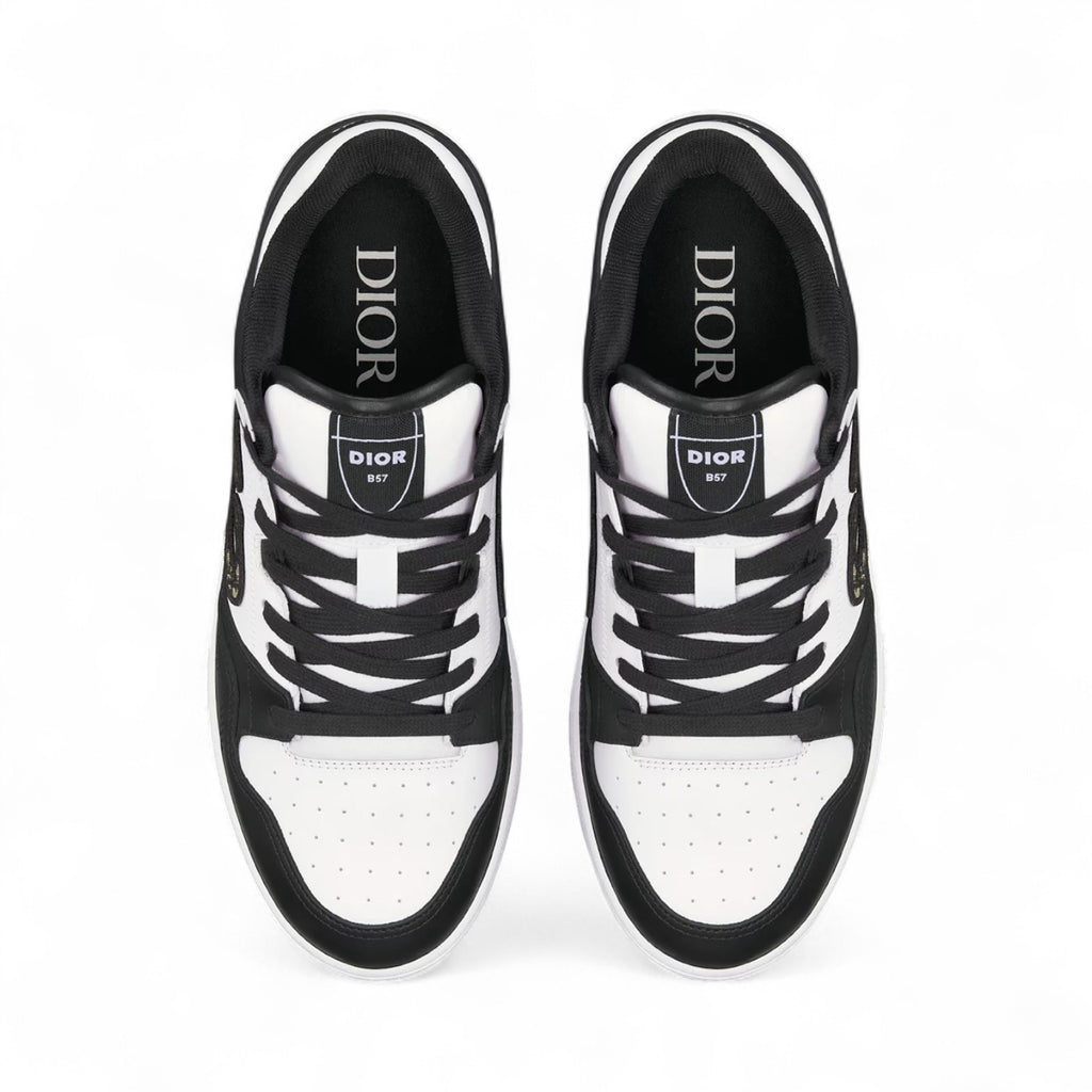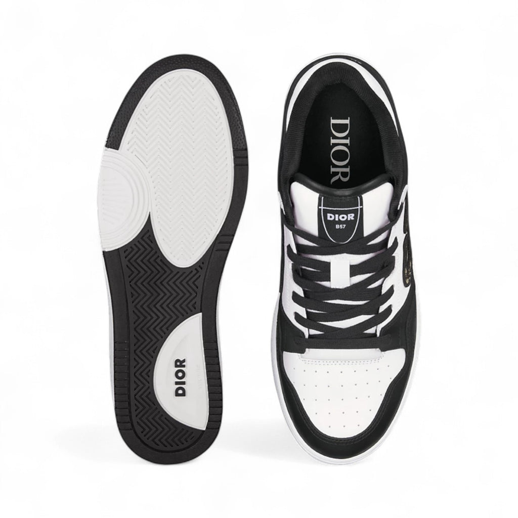 حذاء B57 Dribble الرياضي منخفض الرقبة قطعة أساسية جديدة من دار الأزياء. مصنوع من جلد عجل ناعم باللونين الأسود والأبيض، ومزين بشعار ديور أوبليك جاكار باللونين البيج والأسود على الجانبين. يتميز الحذاء الرياضي بتفاصيل مميزة متنوعة على اللسان والنعل والجزء الخلفي، بينما تُبرز التفاصيل المثقوبة والخياطة العلوية والجزء المطاطي جاذبيته الرياضية. يُكمله نعل مطاطي ثنائي اللون، ليُضفي لمسةً أنيقة على أي إطلالة مفضلة.