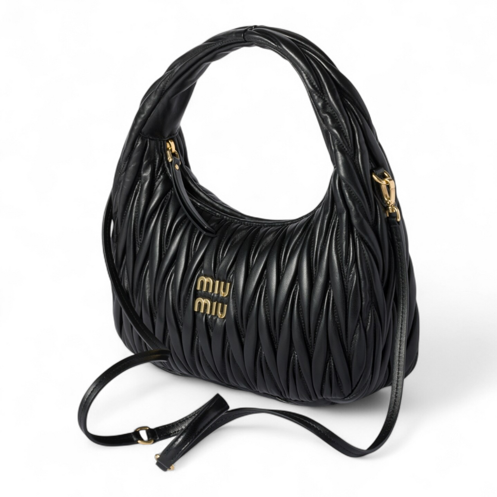 MIU MIU REGULAR WANDER MATELASSE NAPPA LEATHER WOMEN BLACK HOBO BAG