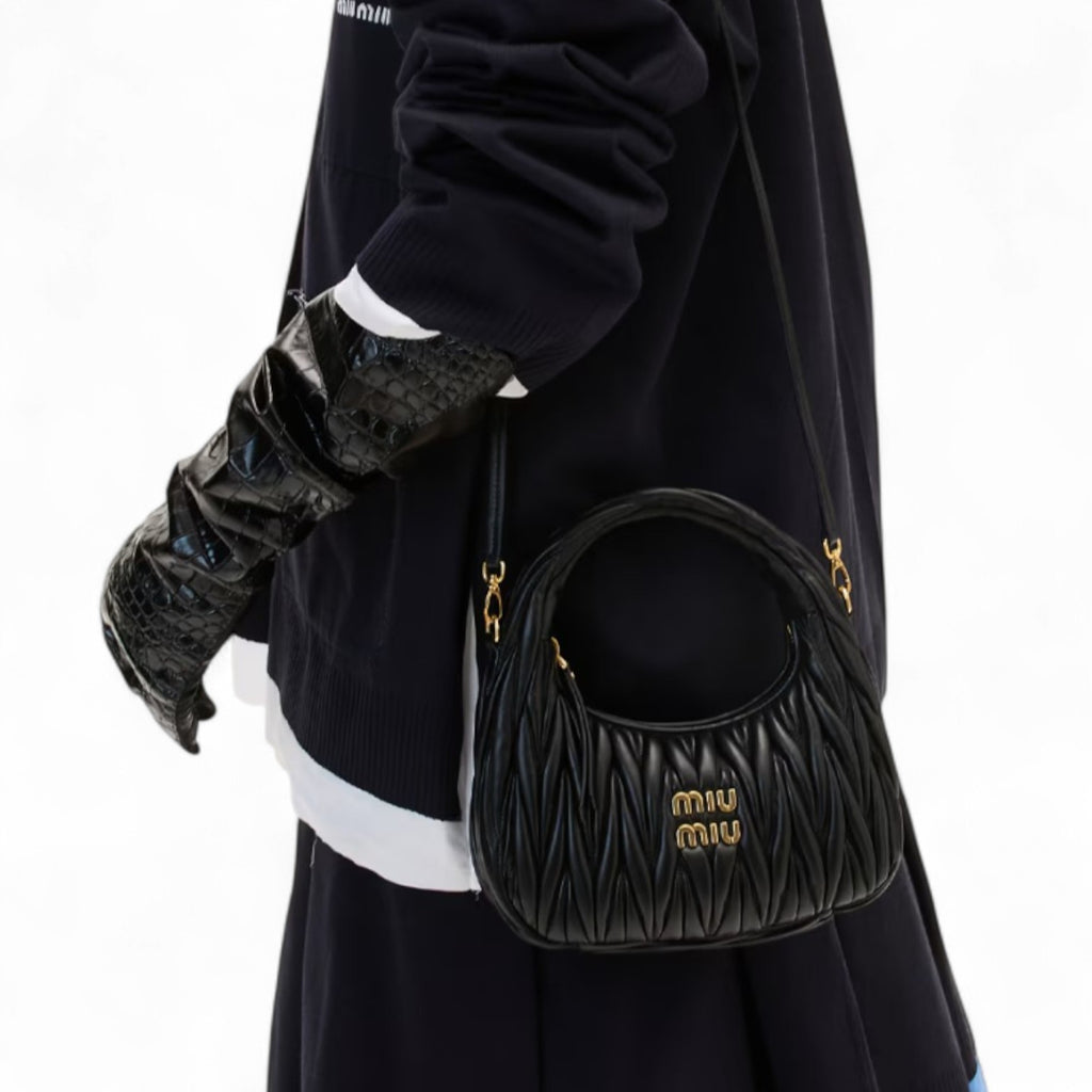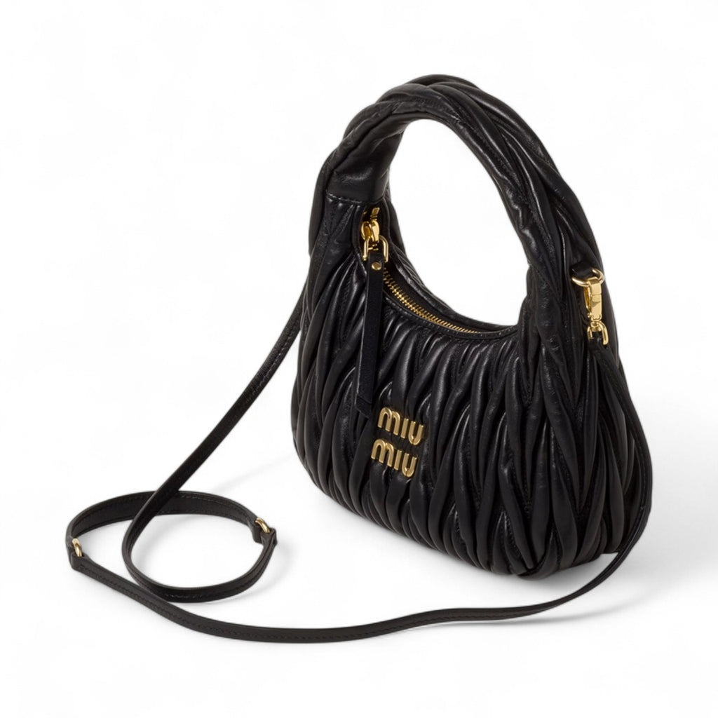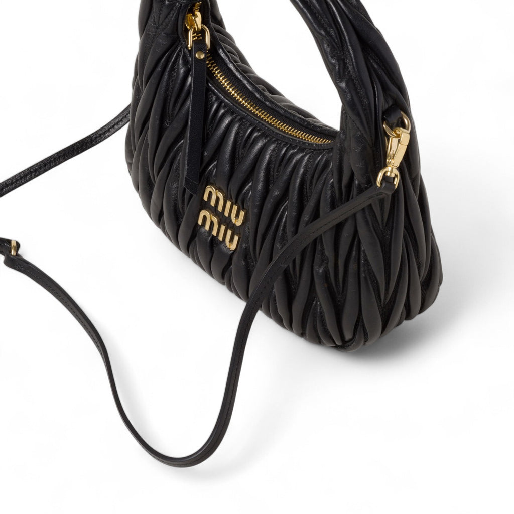 MIU MIU SMALL WANDER MATELASSE NAPPA LEATHER WOMEN BLACK HOBO BAG