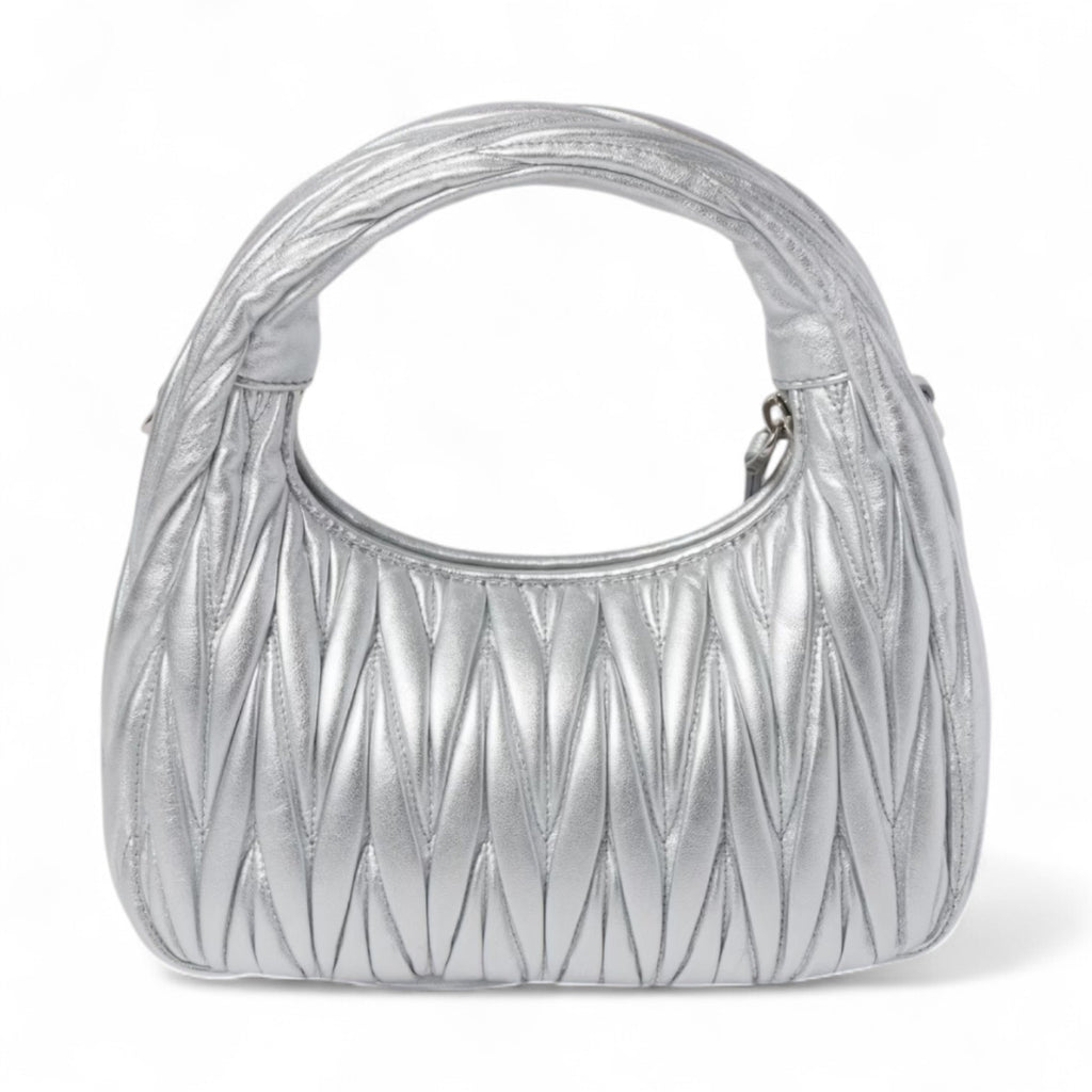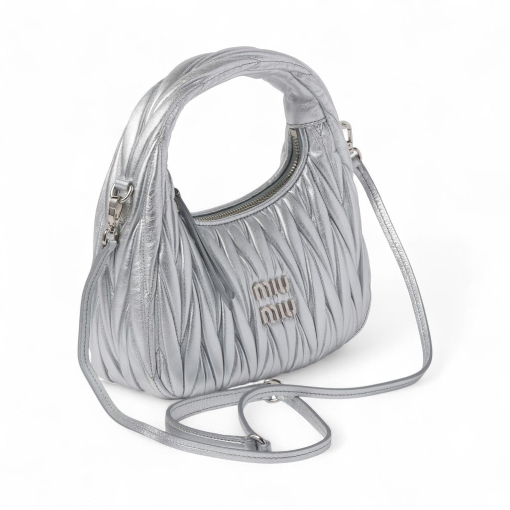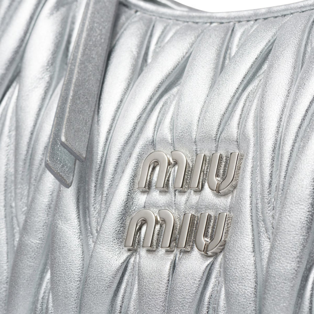 MIU MIU SMALL WANDER MATELASSE NAPPA LEATHER WOMEN SILVER HOBO BAG