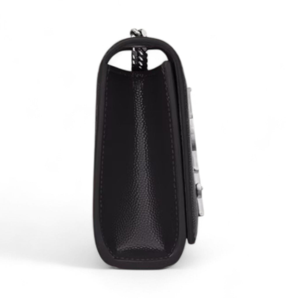 حقيبة سان لوران كيت صغيرة من الجلد الأسود المنقوش بحبيبات البودر