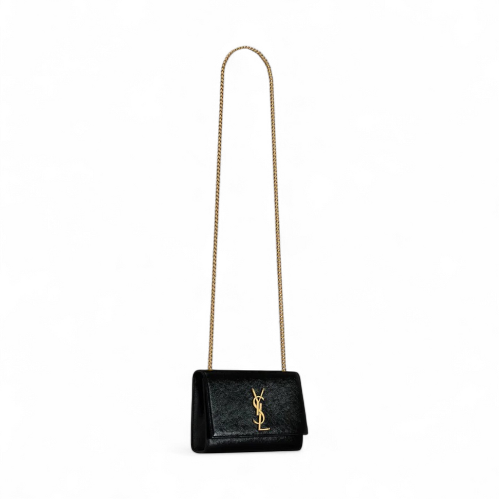 حقيبة سان لوران كيت سمول المصنوعة من الجلد الأسود اللامع