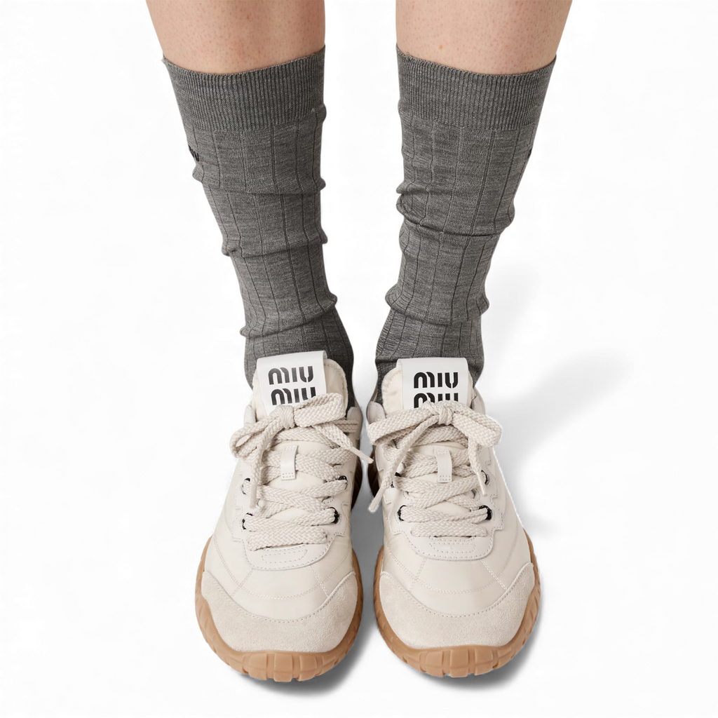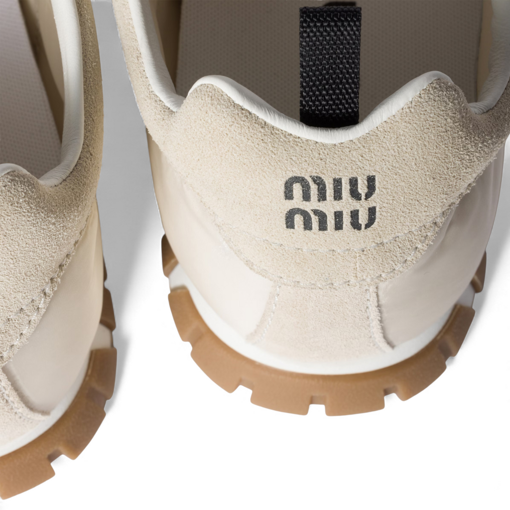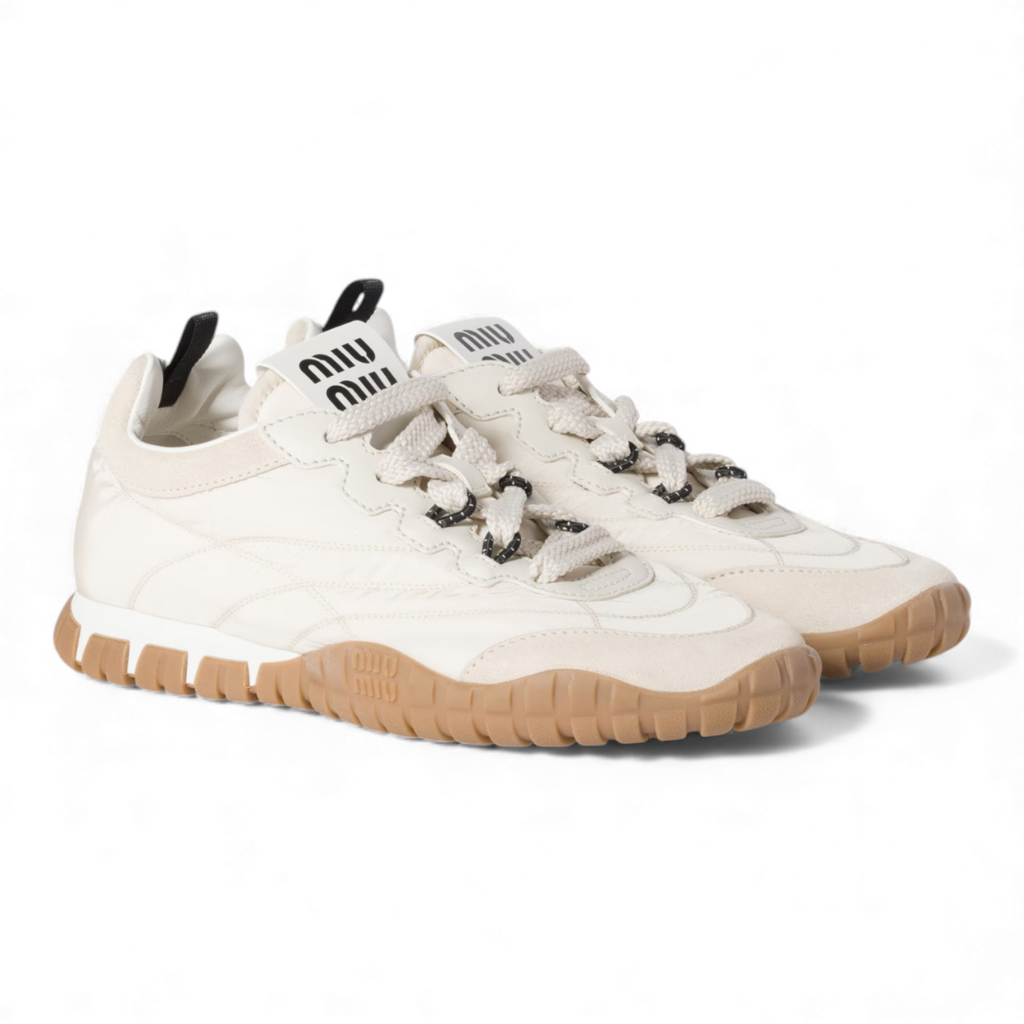 MIU MIU TYRE TECHNICAL FABRIC AND SUEDE WOMEN WHITE SNEAKERS