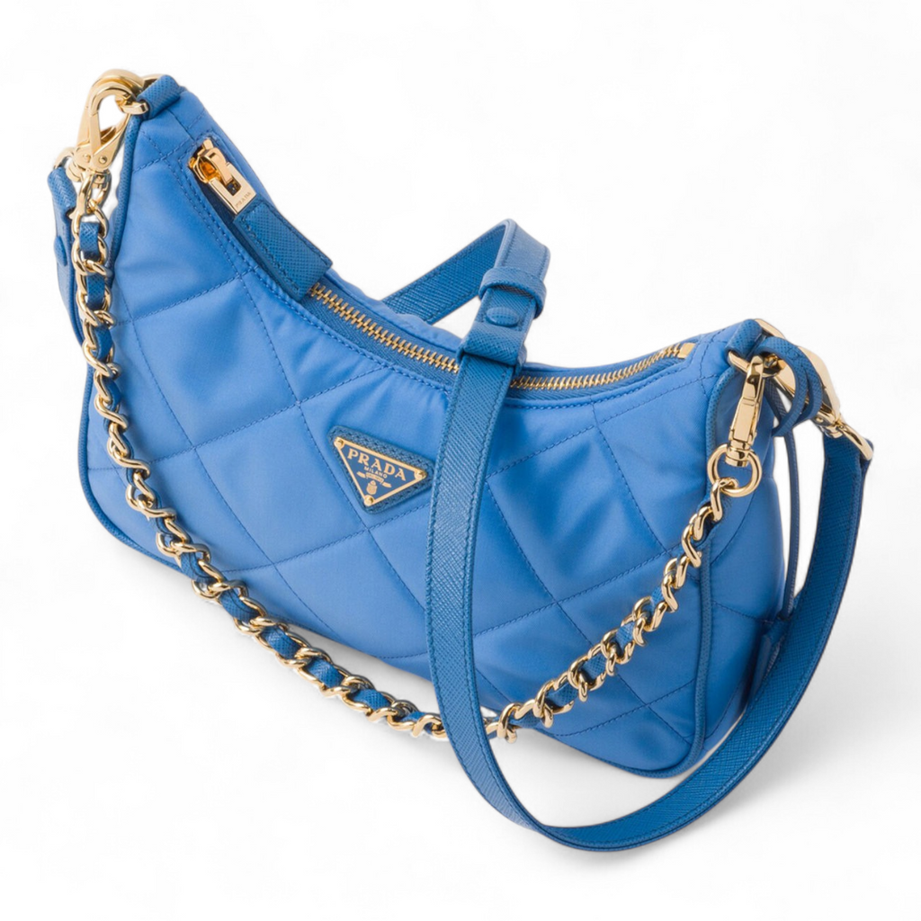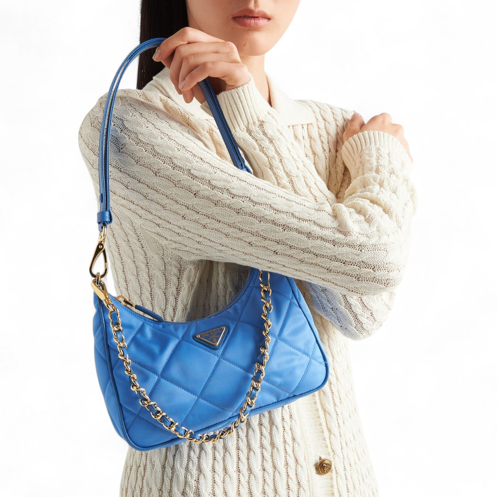 PRADA MINI RE-EDITION 1995 CHAINE RE-NYLON WOMEN BLUE SHOULDER BAG