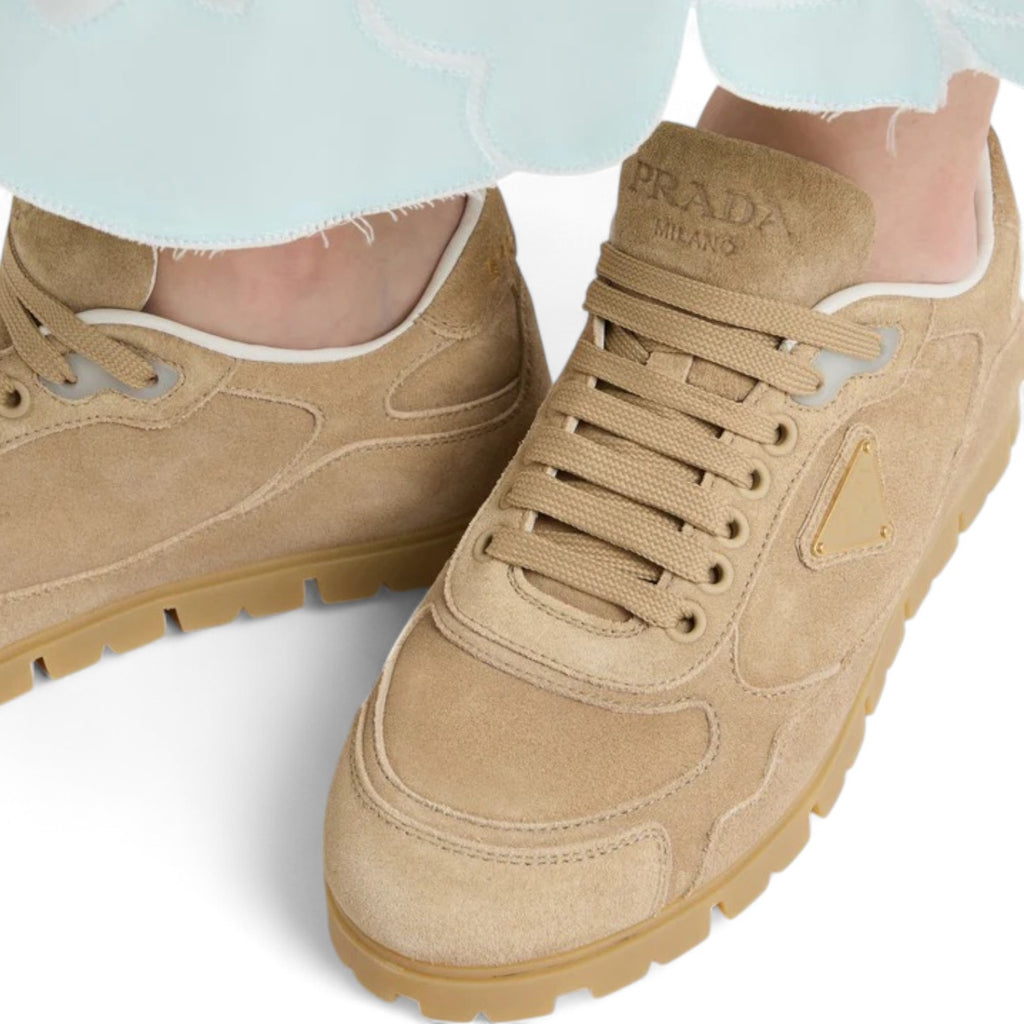 حذاء رياضي برادا تريل من الجلد المدبوغ الباهت للنساء باللون البيج - سيتم شحن لمقاس هذا المنتج خلال 15-30 يوم