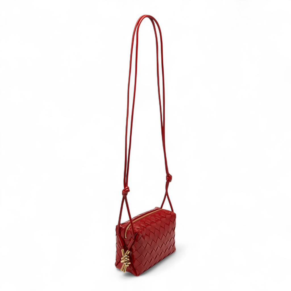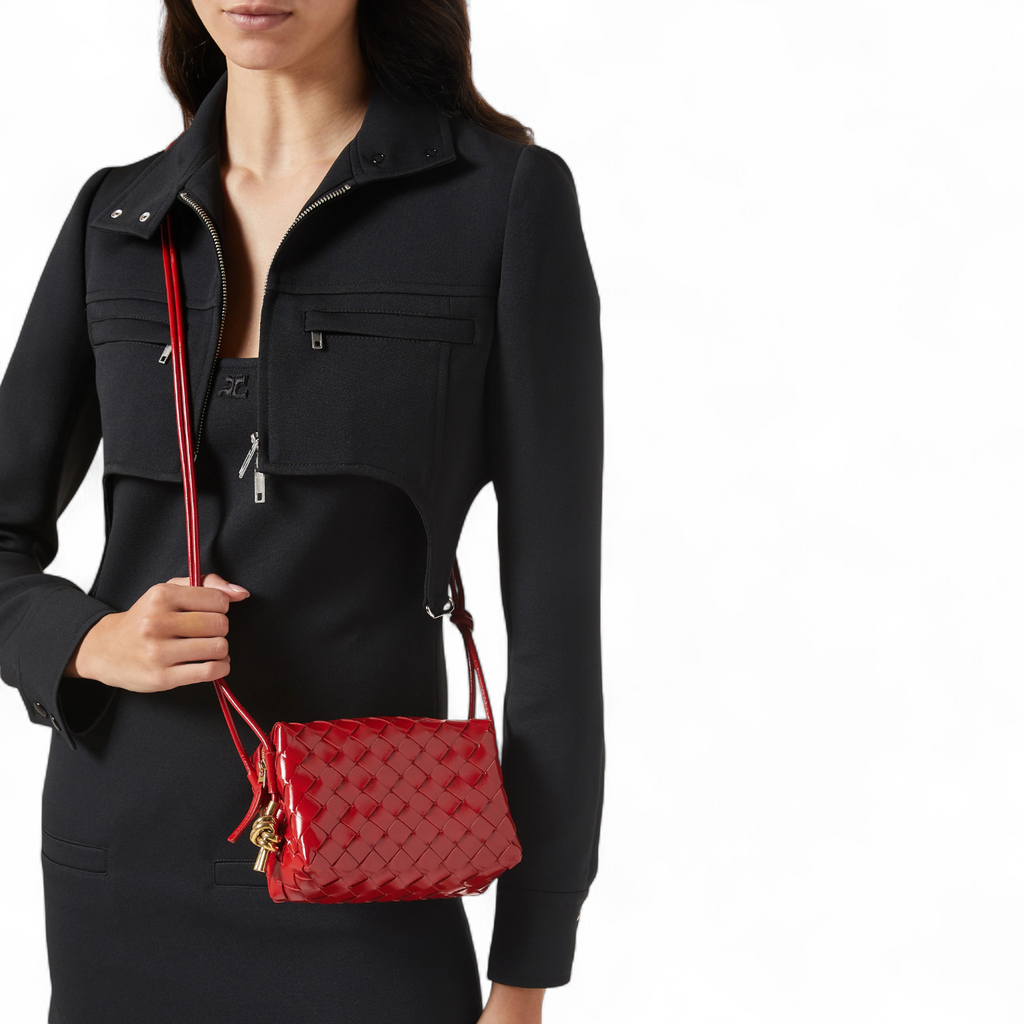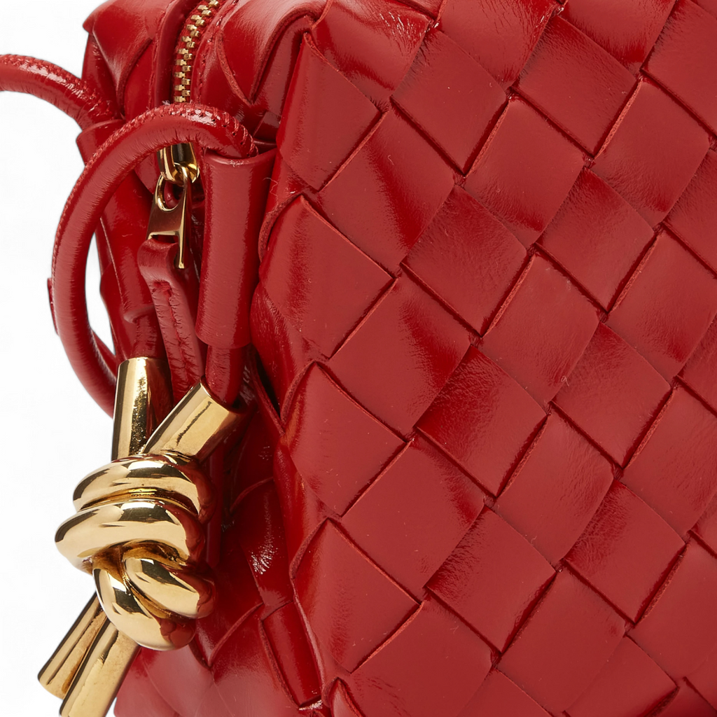 Bottega Veneta's mini bag embodies sophistication, with the brand's signature weave design taking centre stage. Despite its petite size, it has a spacious interior, perfect for storing all your valuables. Gold hardware and loop ties discreetly adorn the piece - a testament to the label's commitment to luxury and style.
