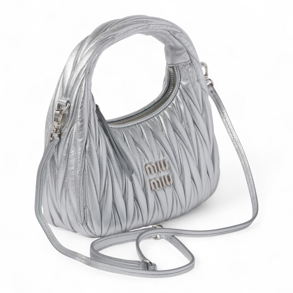 MIU MIU MINI WANDER MATELASSE NAPPA LEATHER WOMEN GREY HOBO BAG