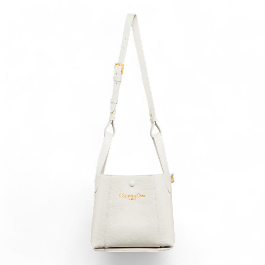 DIOR GRAINED CALFSKIN WOMEN WHITE SMALL SIGNATURE BUCKET BAG