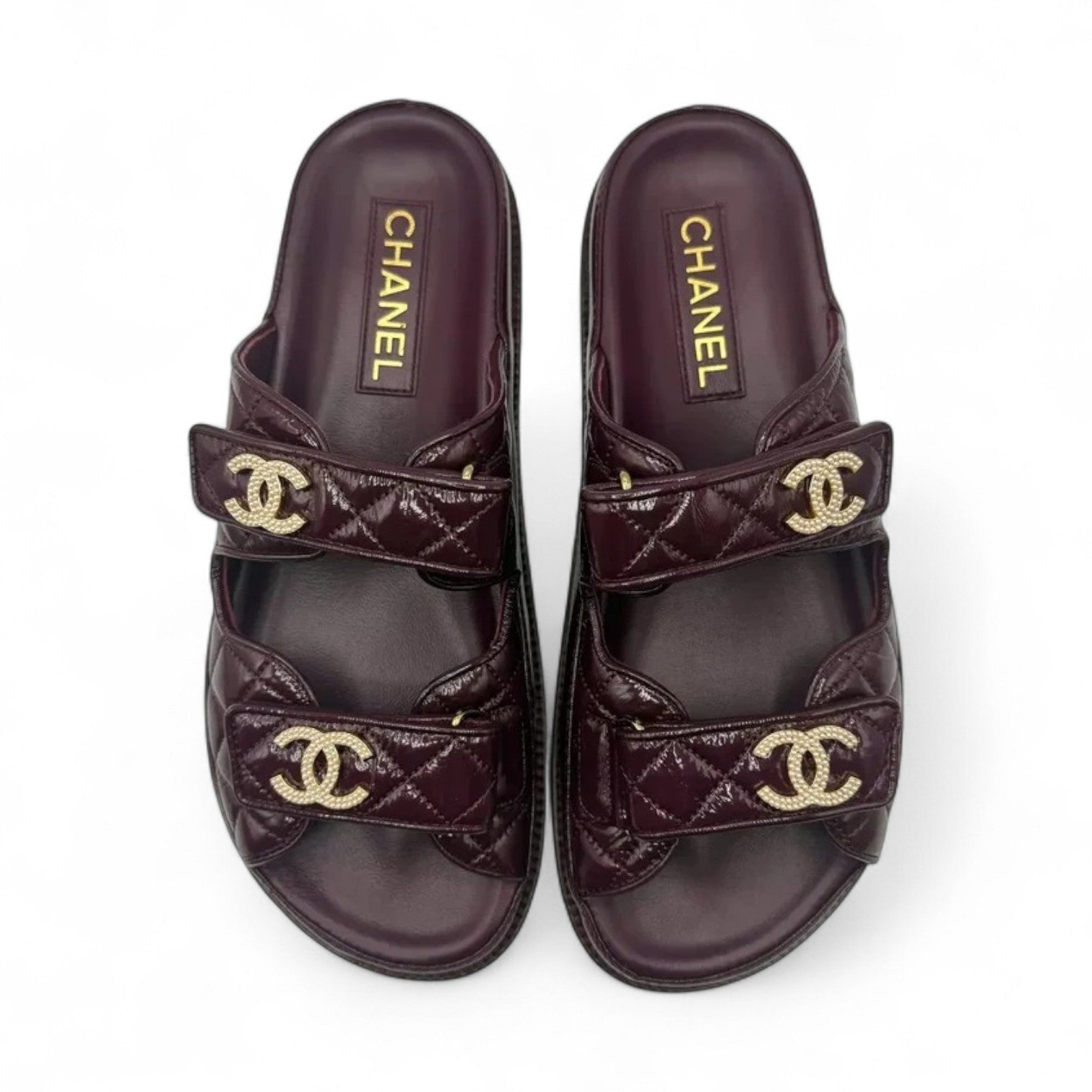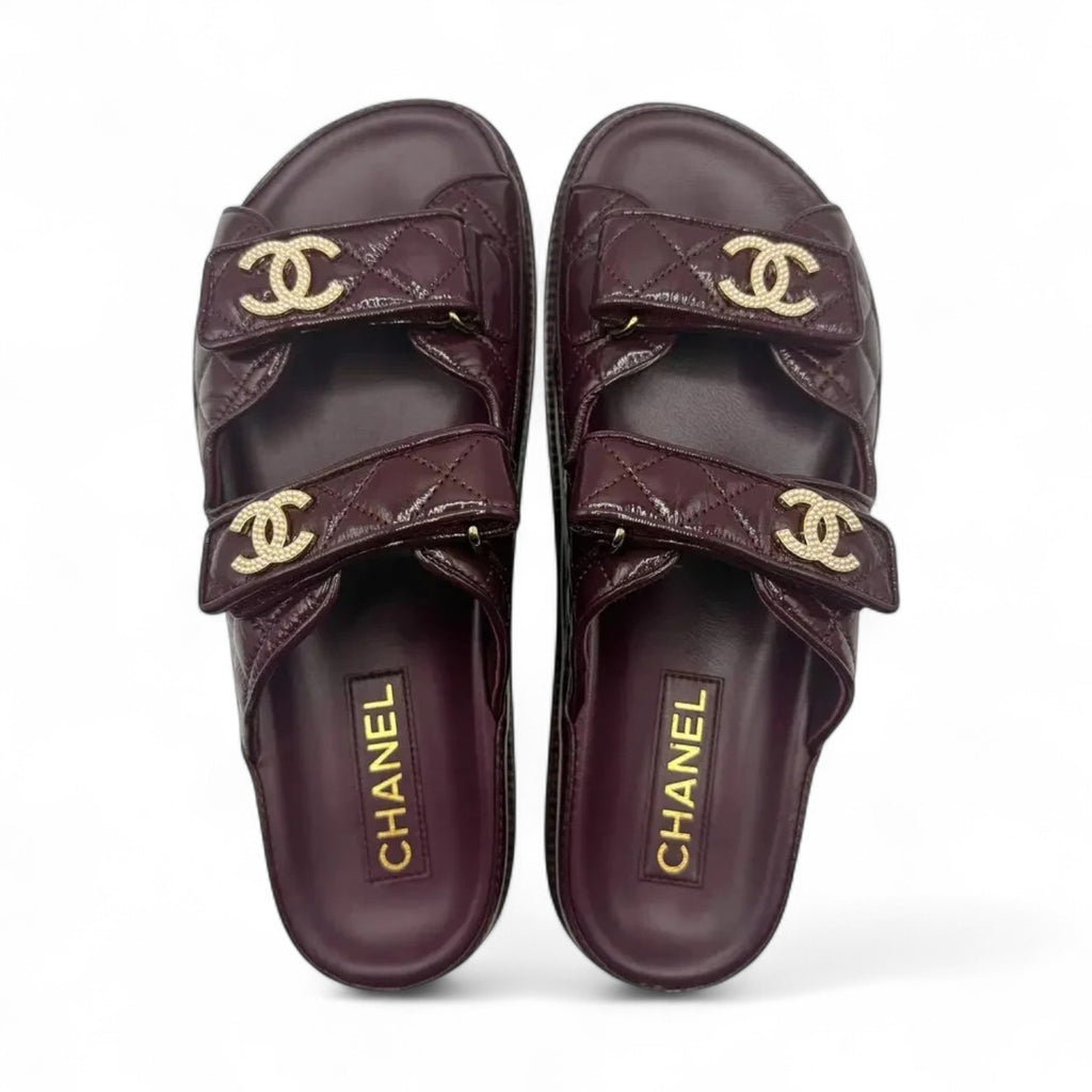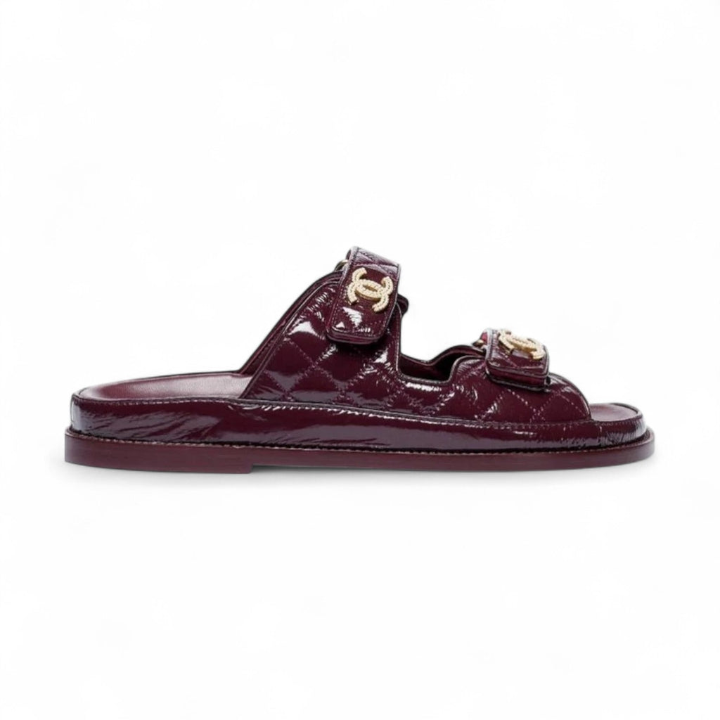 صندل شانيل من جلد العجل المحبب باللون العنابي – e-Outlet