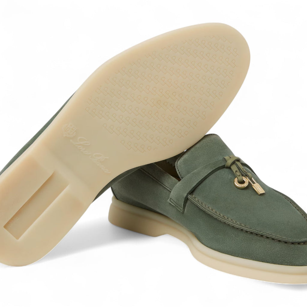 LORO PIANA SUMMER CHARMS WALK SUEDE WOMEN KHAKI LOAFER - سيتم توصيل هذا المقاس خلال 15 إلى 30 يوم عمل من تاريخ الطلب