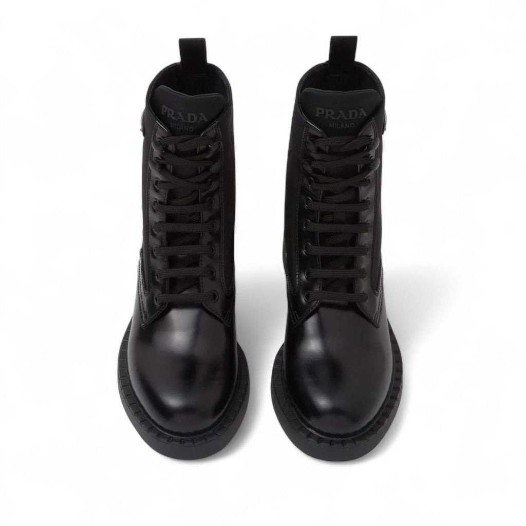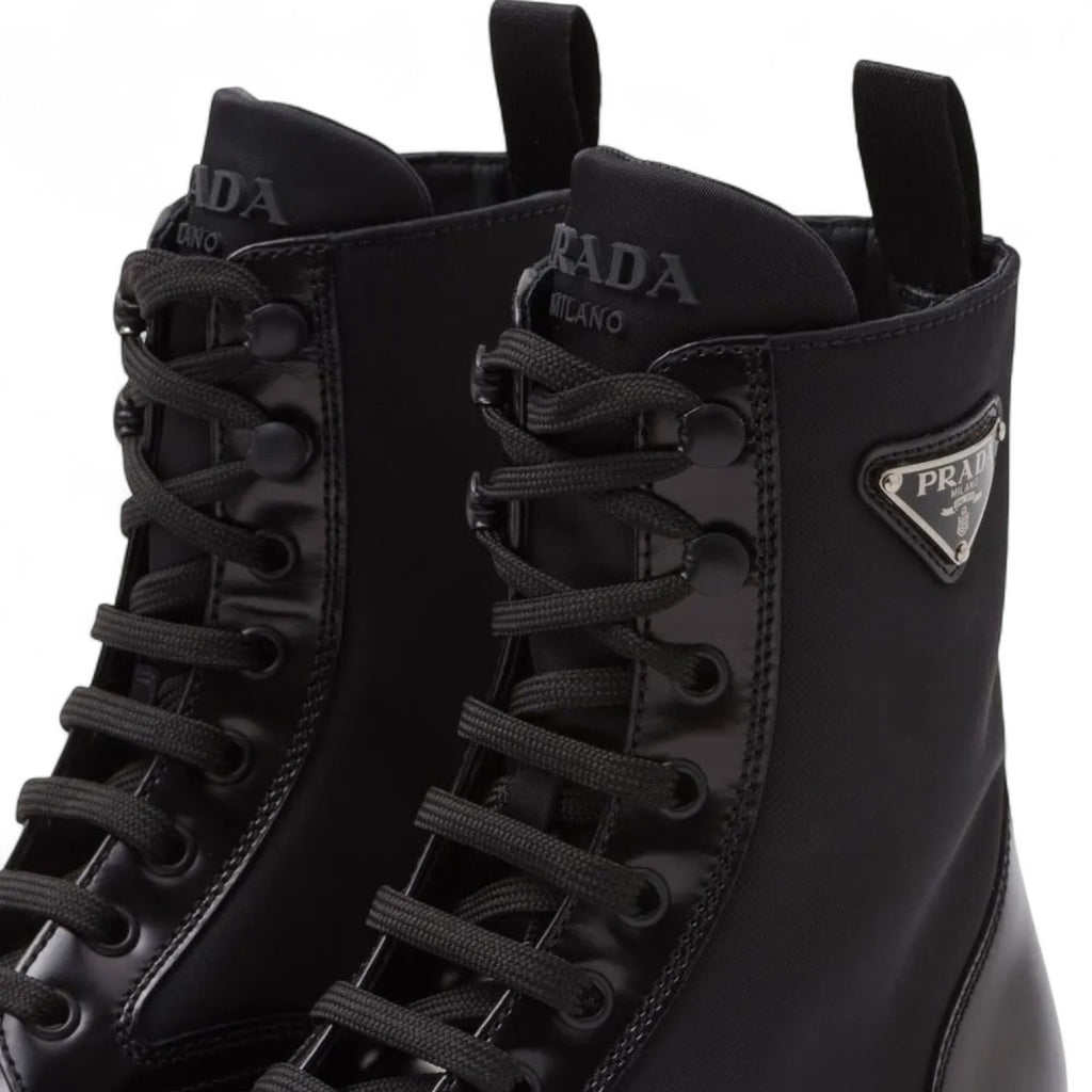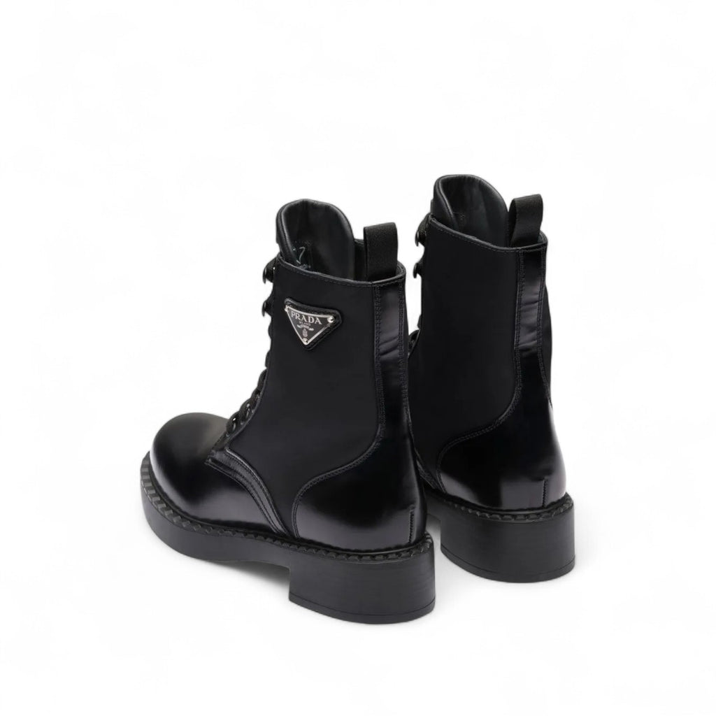 PRADA RE-NYLON LOGO-PLAQUE LEATHER WOMEN BLACK BOOTS - سيتم توصيل هذا المقاس خلال 15 إلى 30 يوم عمل من تاريخ الطلب