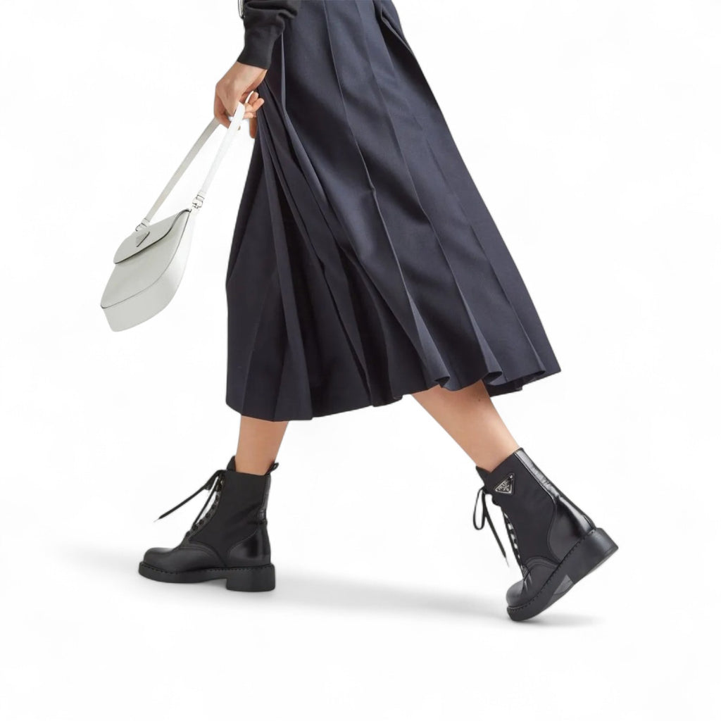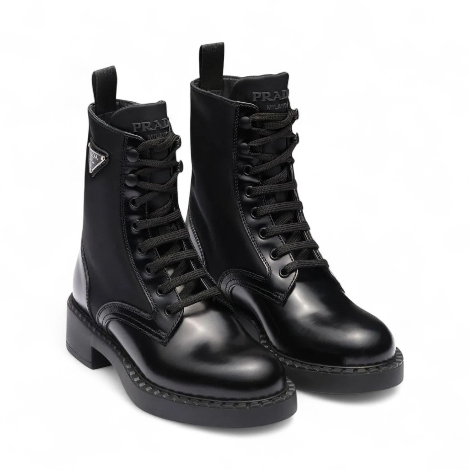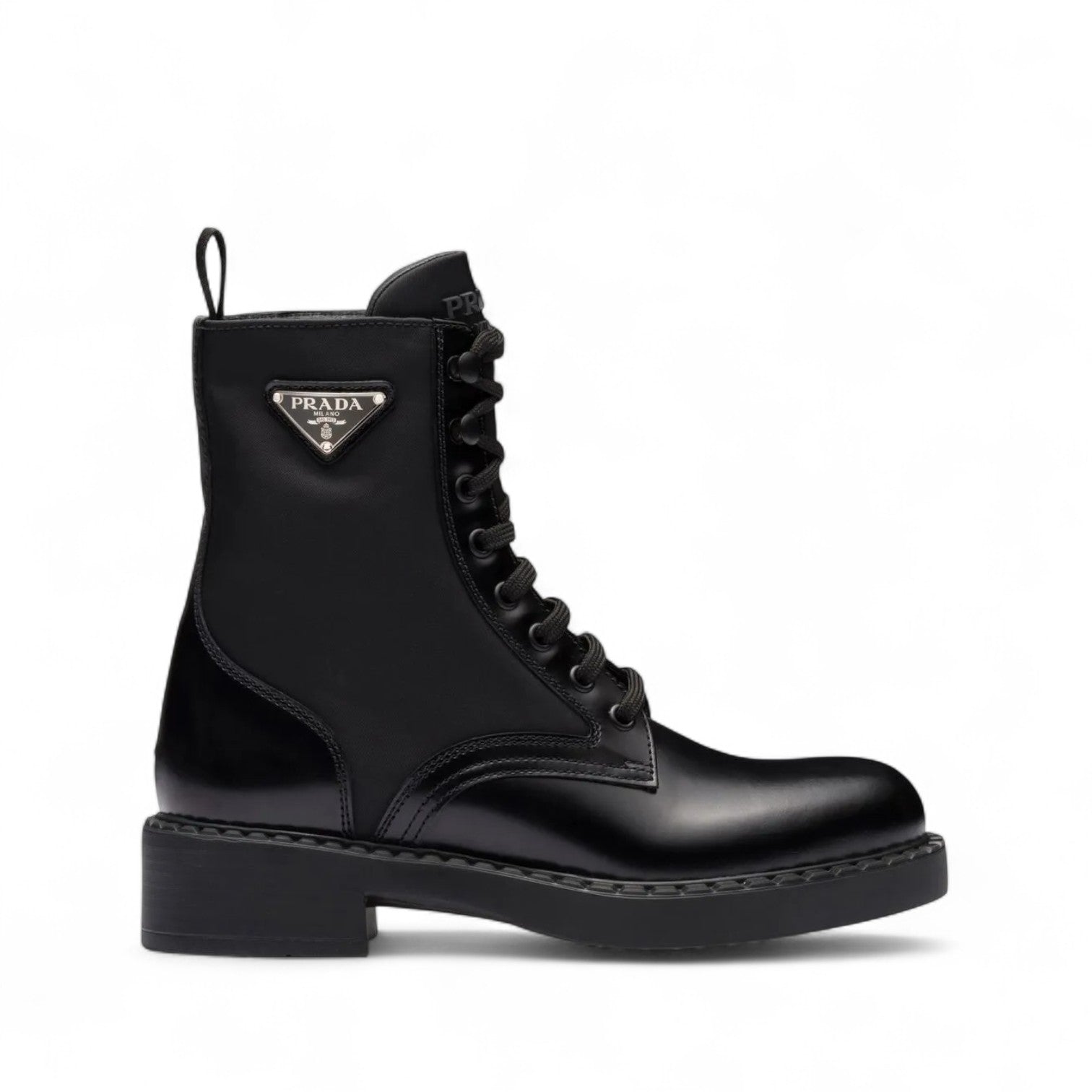 PRADA RE-NYLON LOGO-PLAQUE LEATHER WOMEN BLACK BOOTS - سيتم توصيل هذا المقاس خلال 15 إلى 30 يوم عمل من تاريخ الطلب