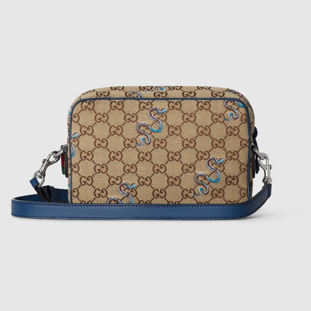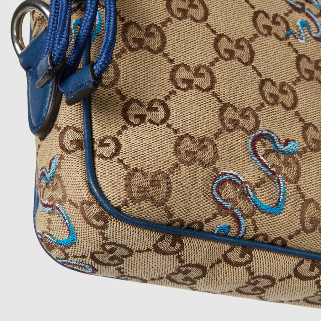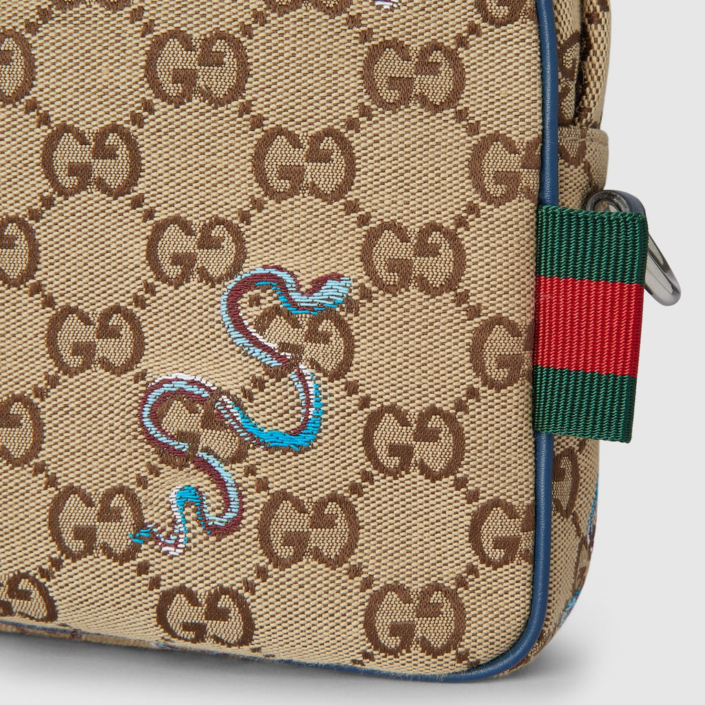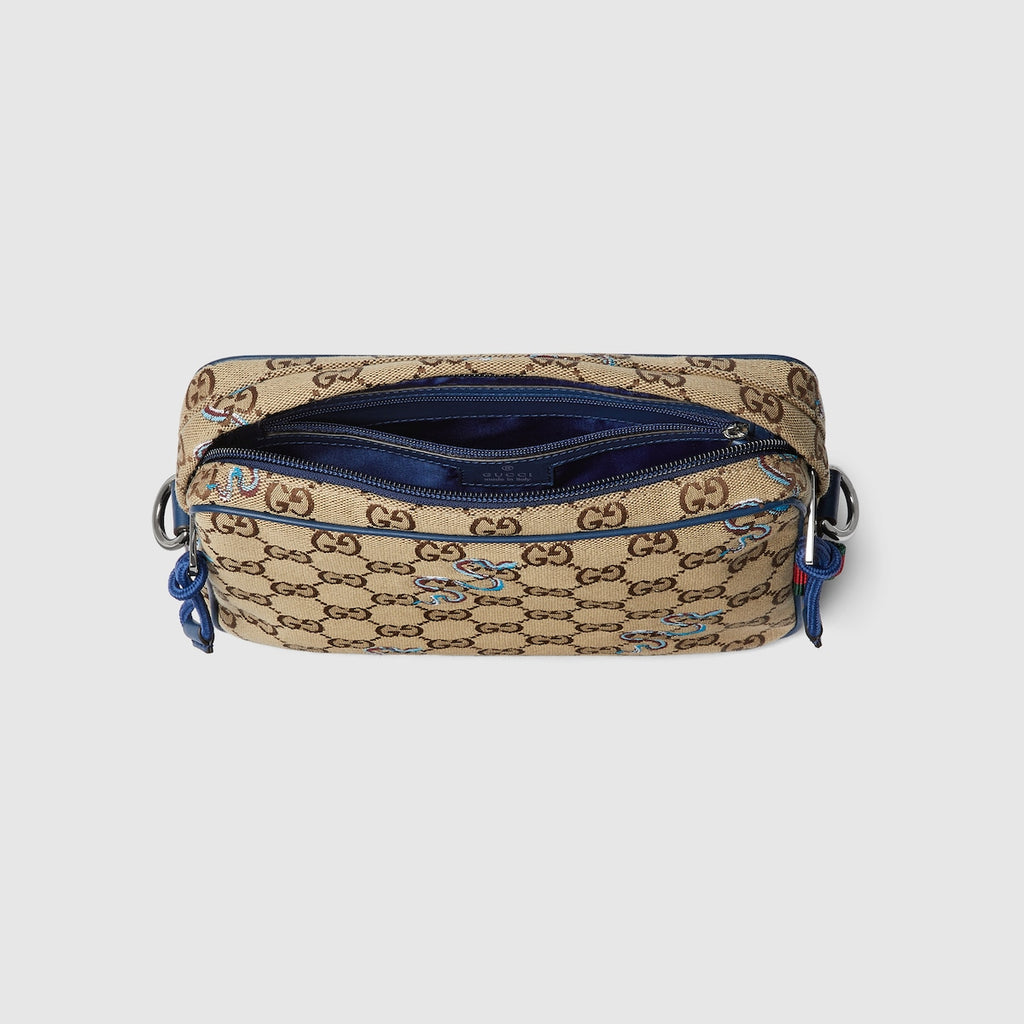 حقيبة كروس بودي بني صغيرة مطرزة بثعبان من غوتشي