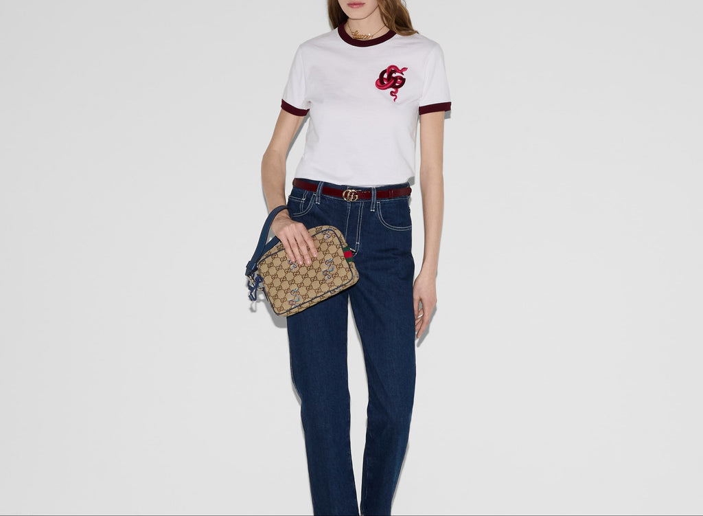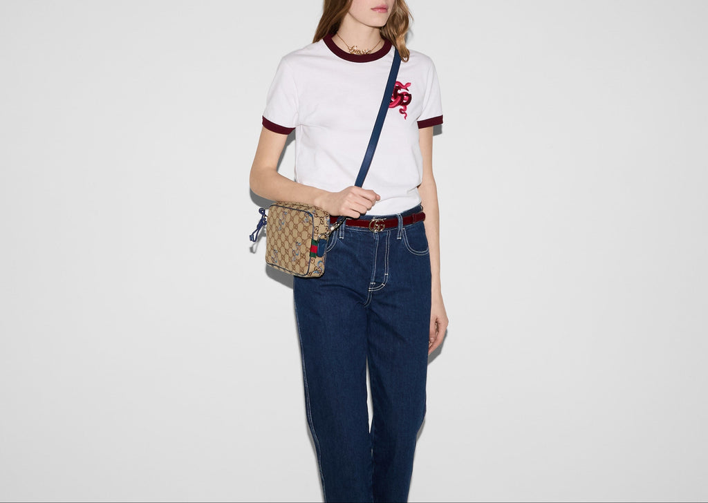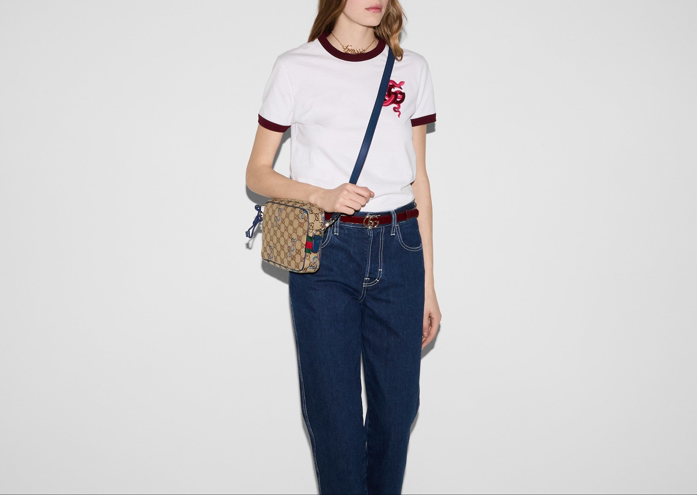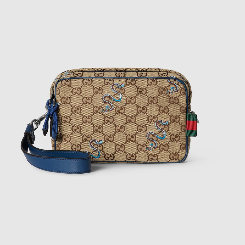 حقيبة كروس بودي بني صغيرة مطرزة بثعبان من غوتشي