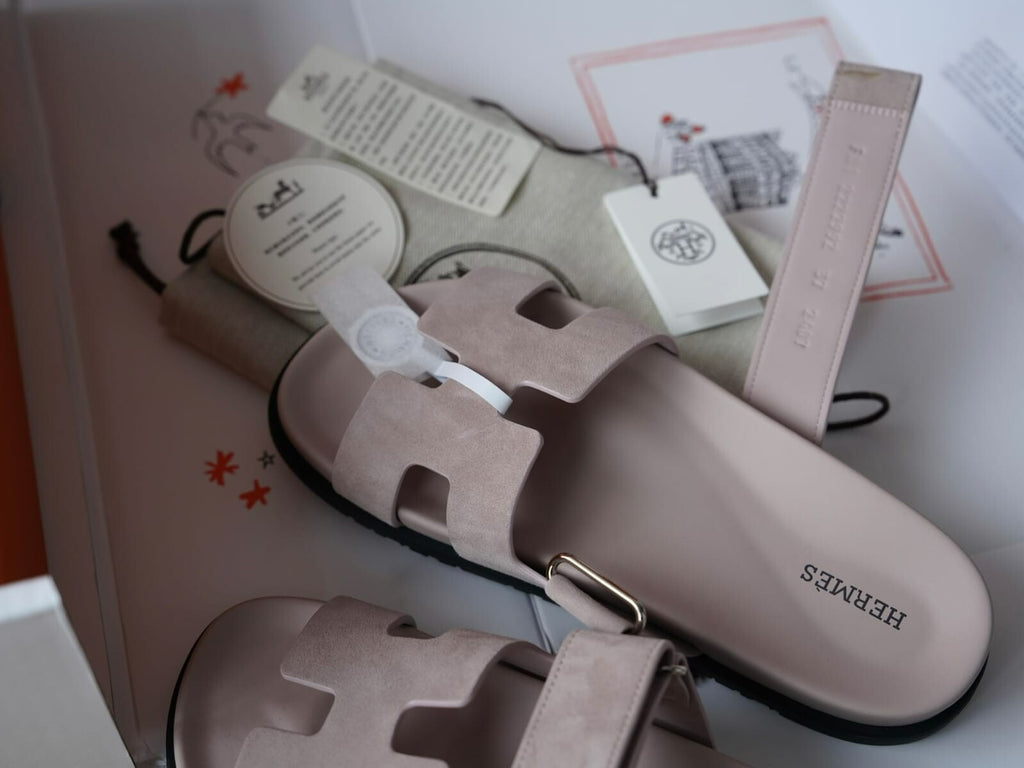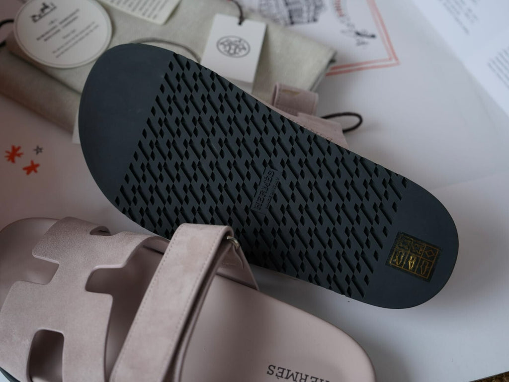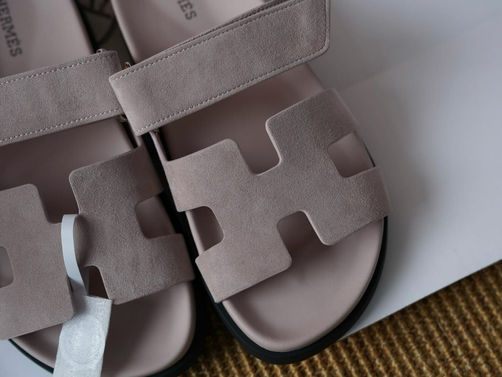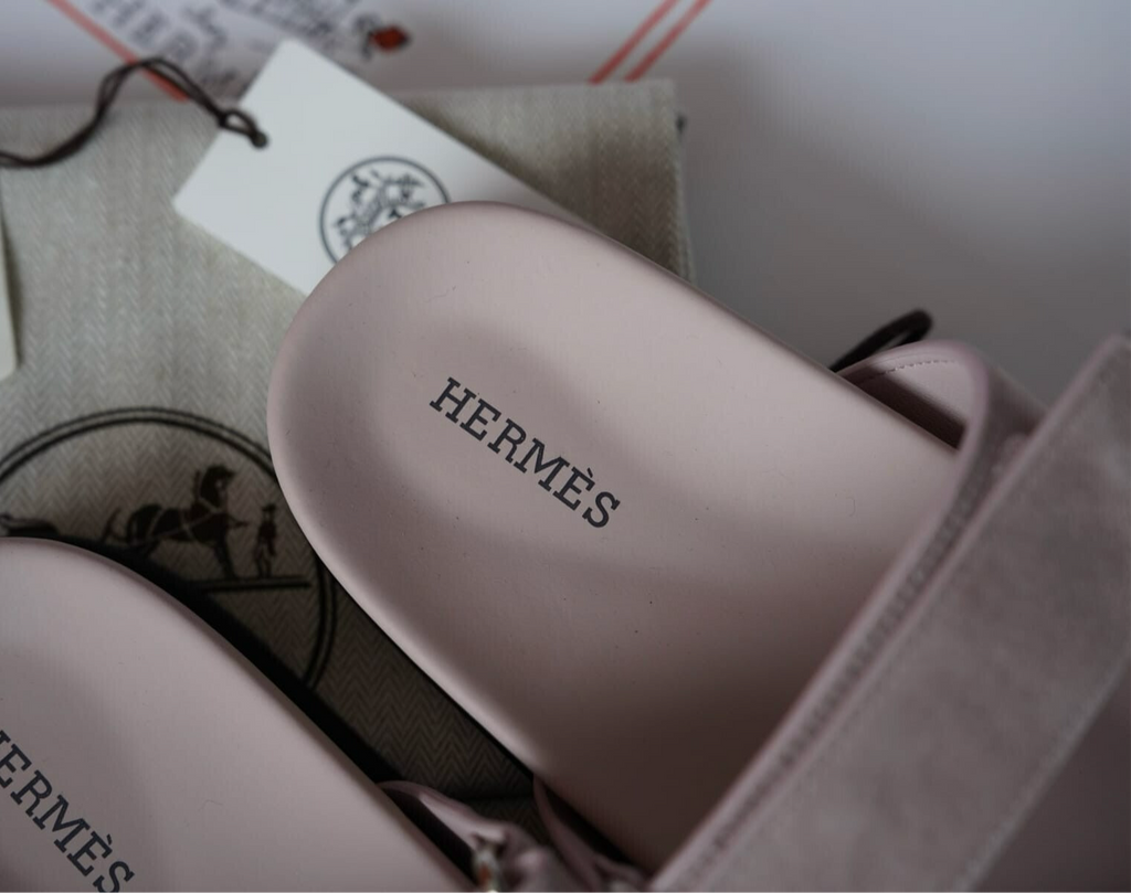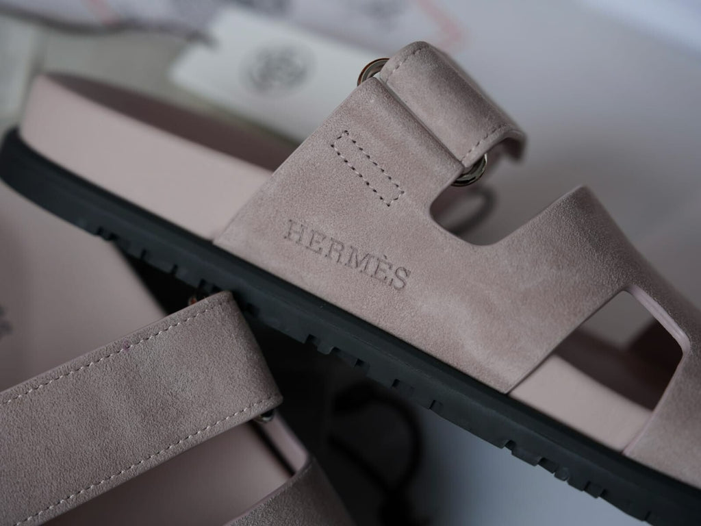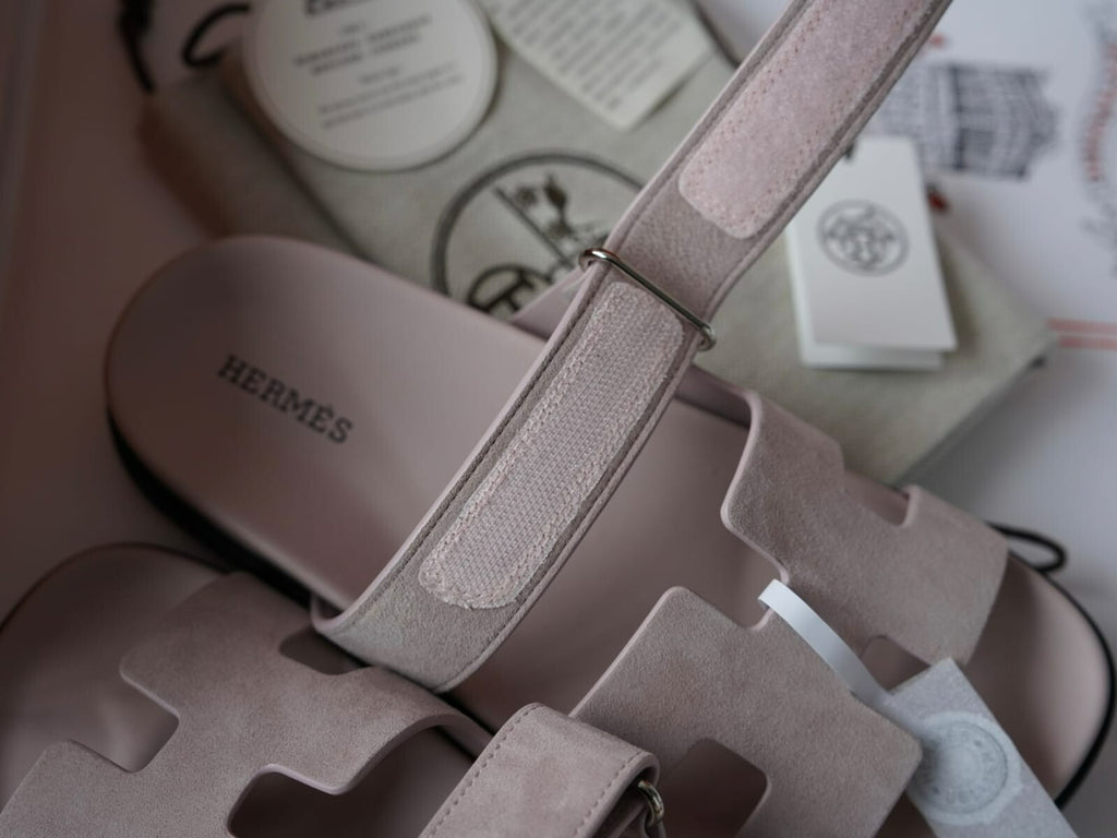 صندل هيرمس نسائي من جلد الغزال باللون الوردي الفاتح