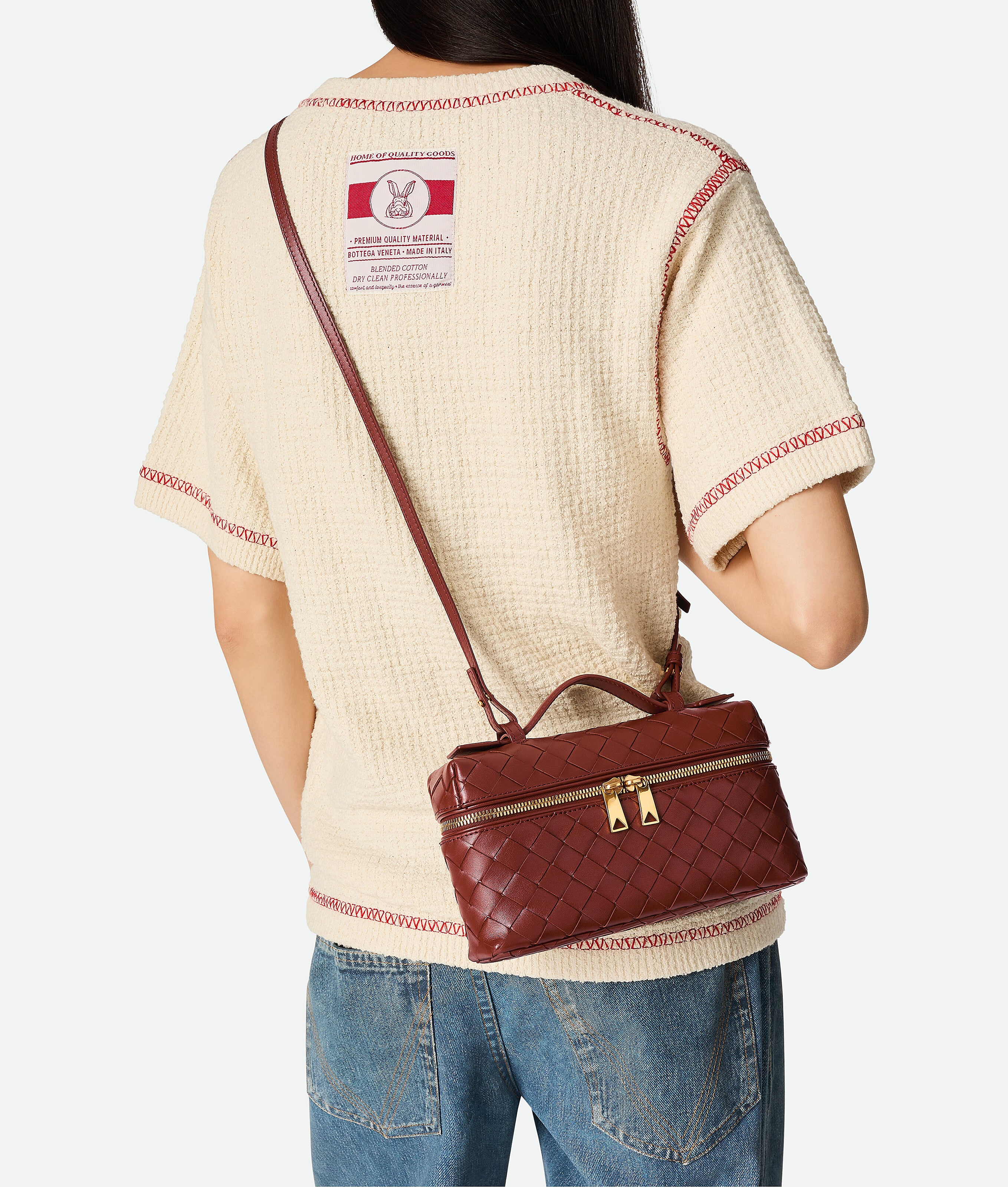 • Intrecciato leather vanity case with detachable strap
