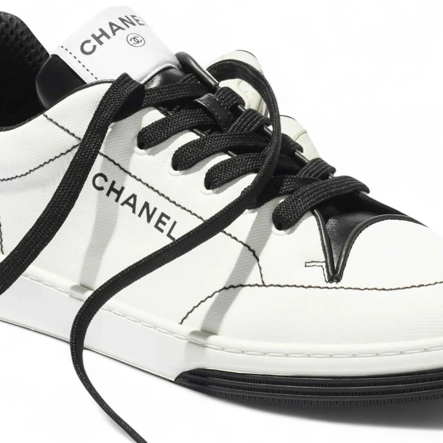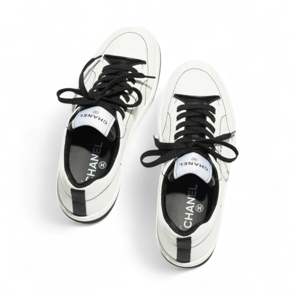 CHANEL COTTON WOMEN WHITE AND BLACK SNEAKERS – e-Outlet