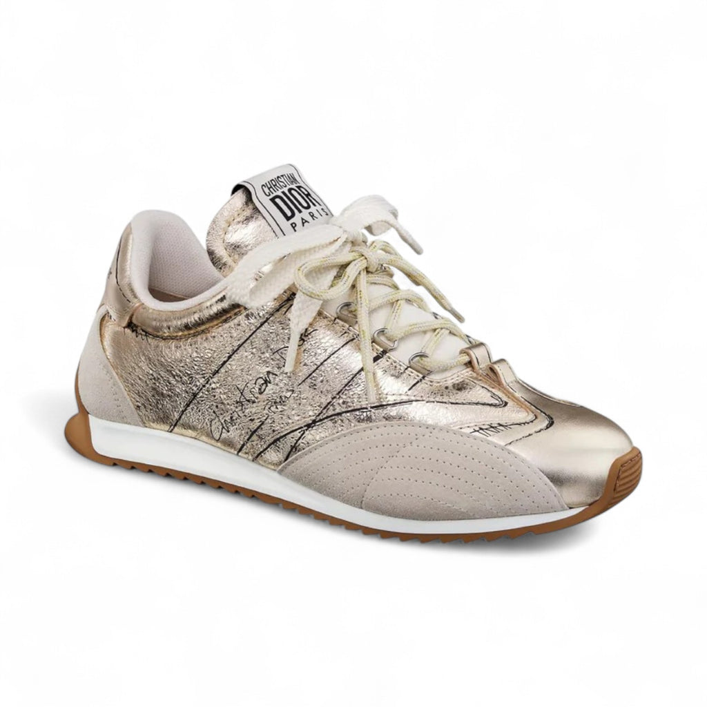 DIOR D-SKETCH GOLD-TONE CRINKLED LAMBSKIN SNEAKER – e-Outlet