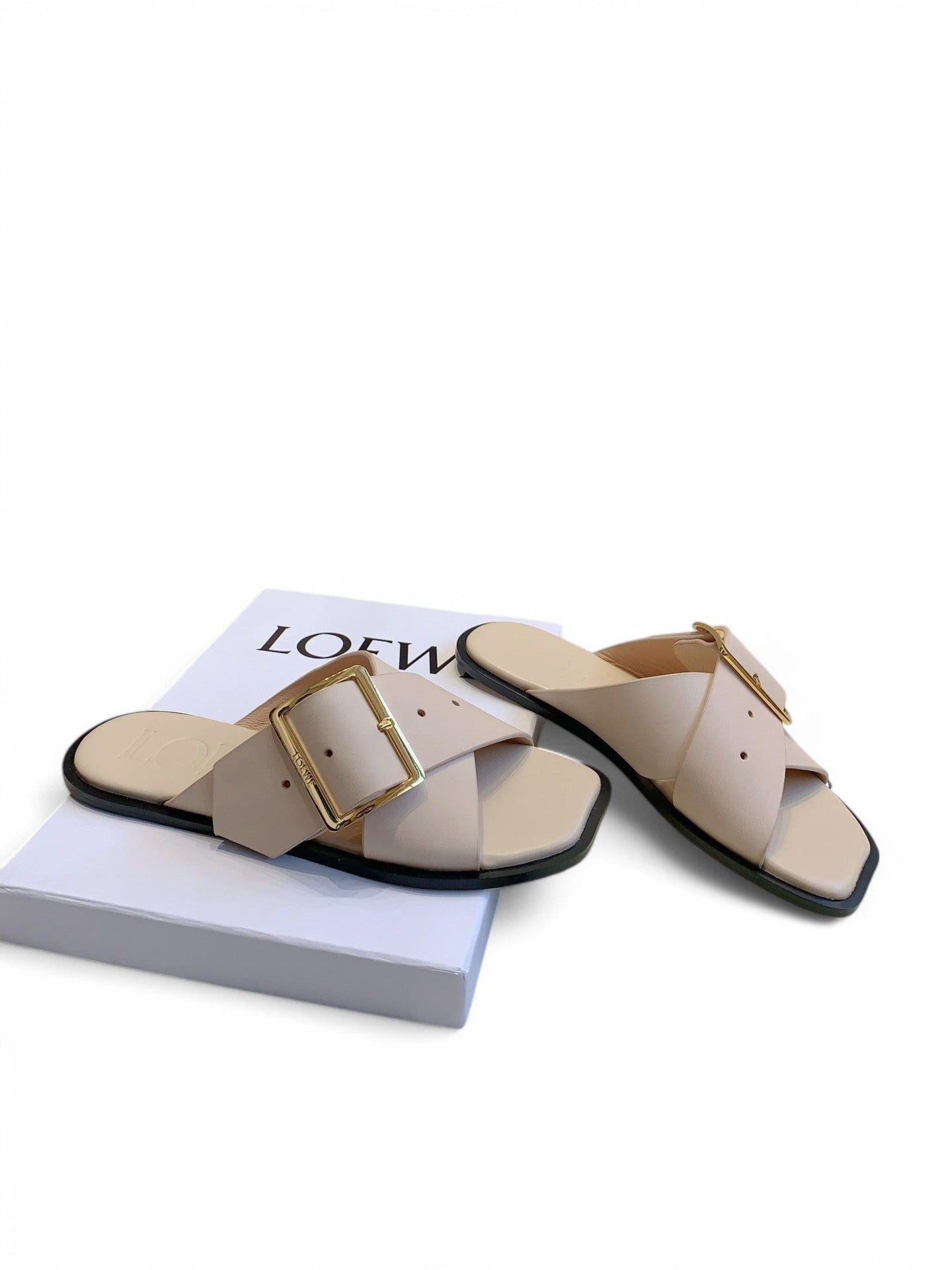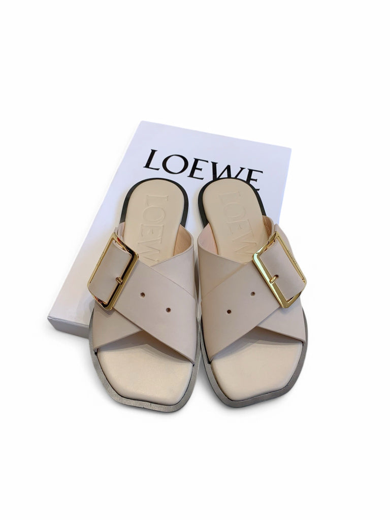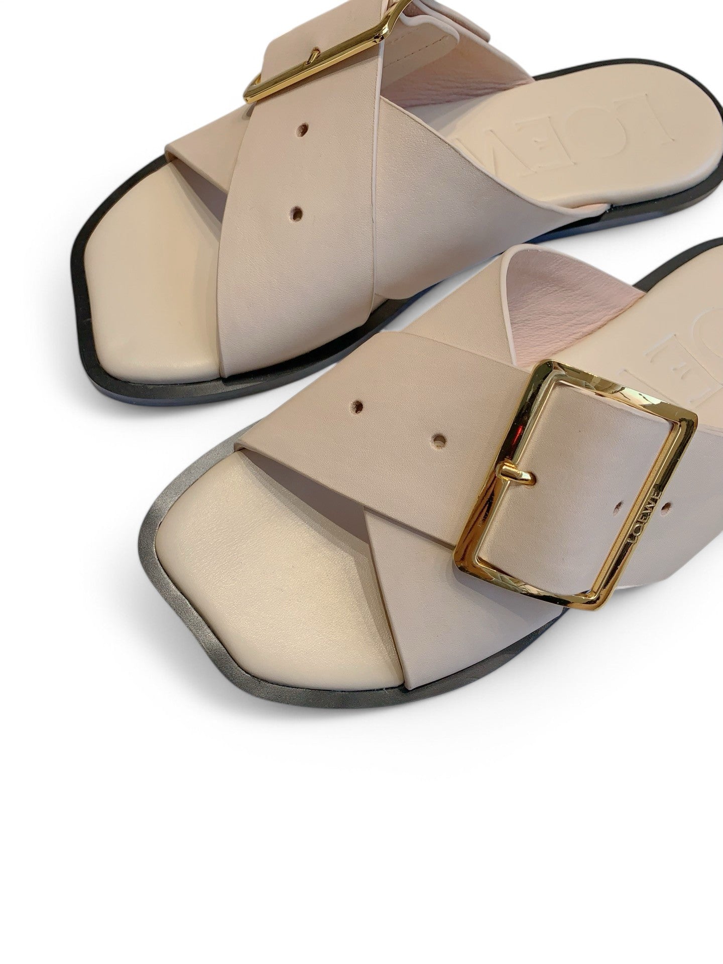 LOEWE CROSS STRAP BUCKLE WOMEN BEIGE SLIDES – e-Outlet