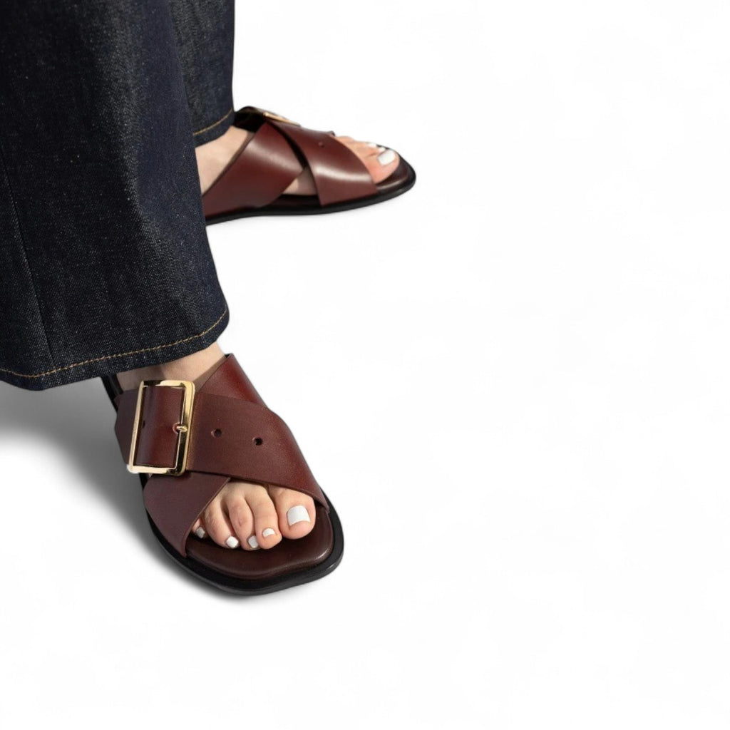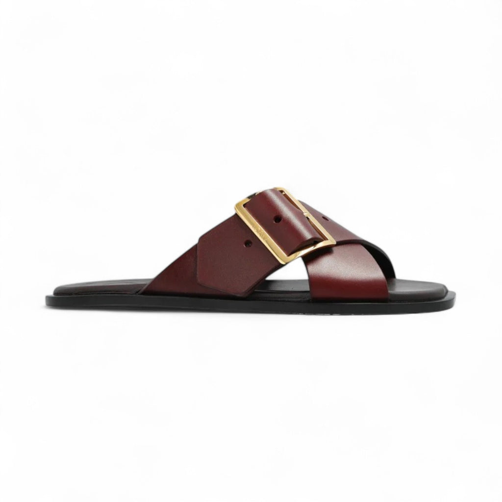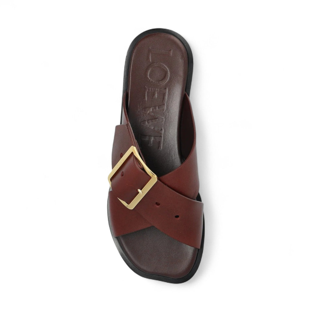 LOEWE CROSS STRAP BUCKLE WOMEN BURGUNDY SLIDES – e-Outlet